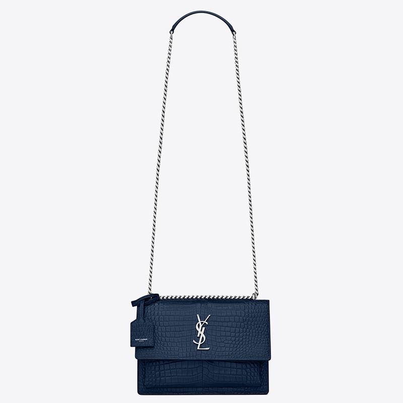 A slick sidekick for days spent in the city, Saint Laurent’s Sunset medium shoulder bag offers a compact silhouette in croc-embossed leather. Styled with a Monogram-embellished flap front to conceal a gusseted pocket, the well-organised interior keeps cards, phones and other essentials safely housed. Complemented with polished silver-tone hardware, a chain shoulder strap slings the bag chicly across the body.