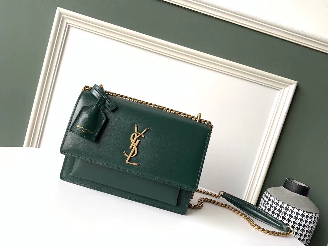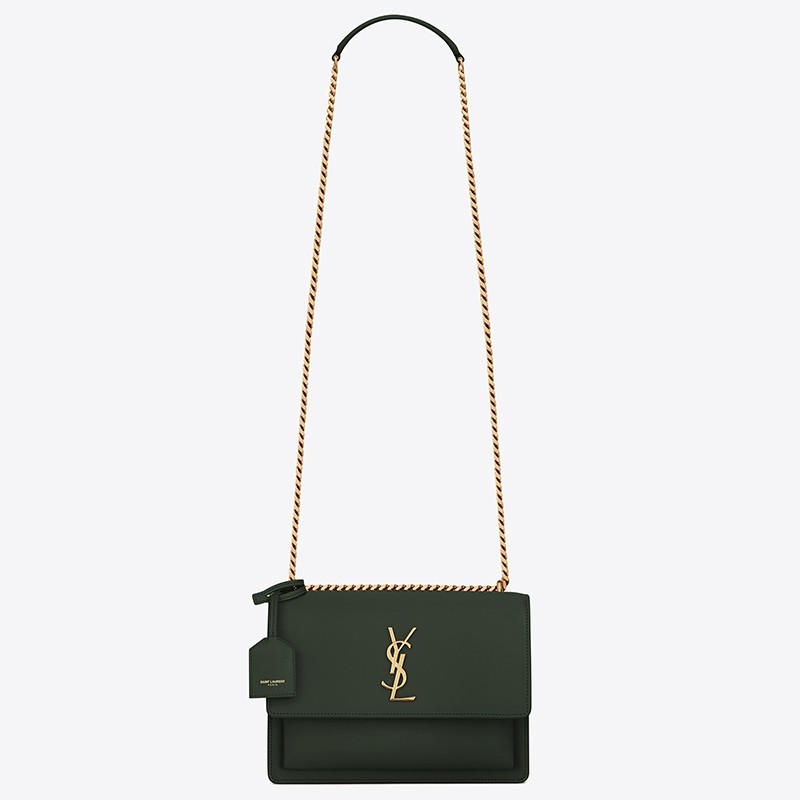 Saint Laurent Sunset Medium Bag In Green Calfskin