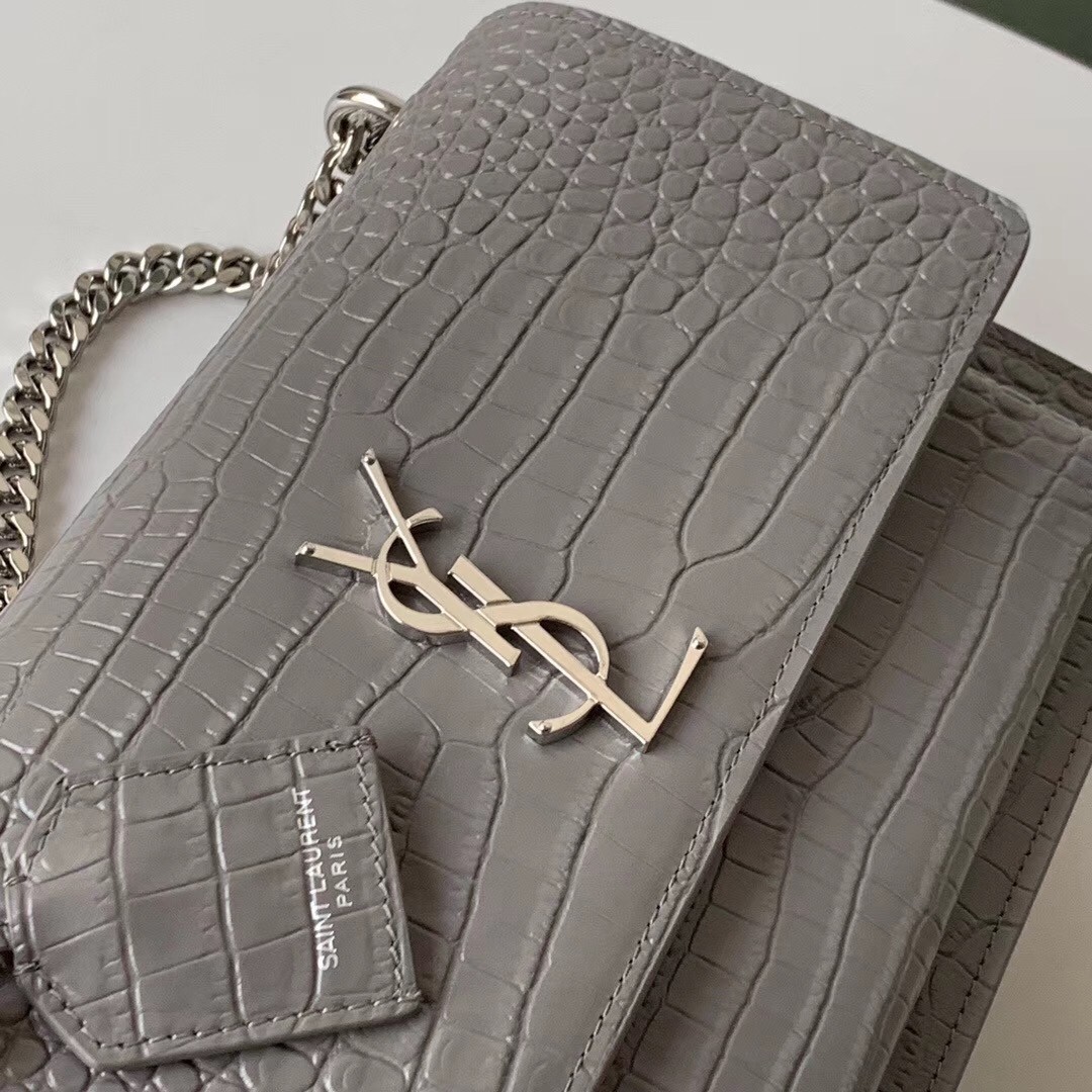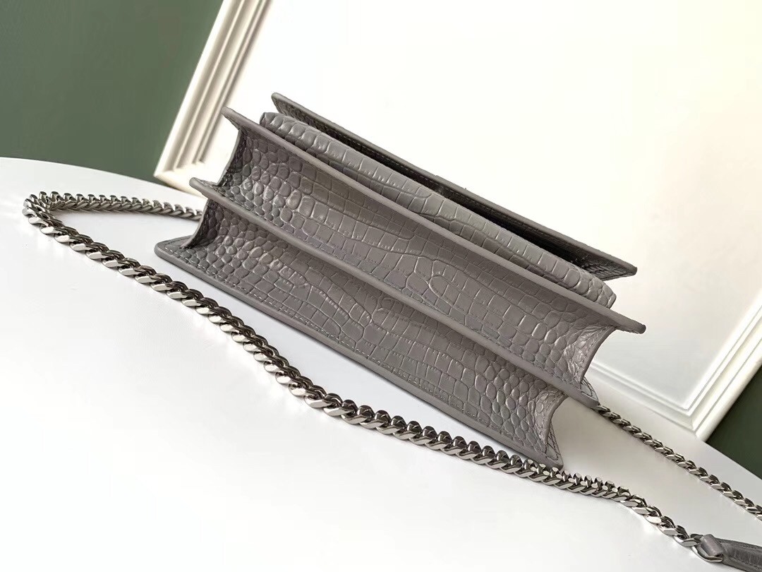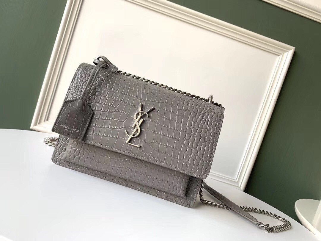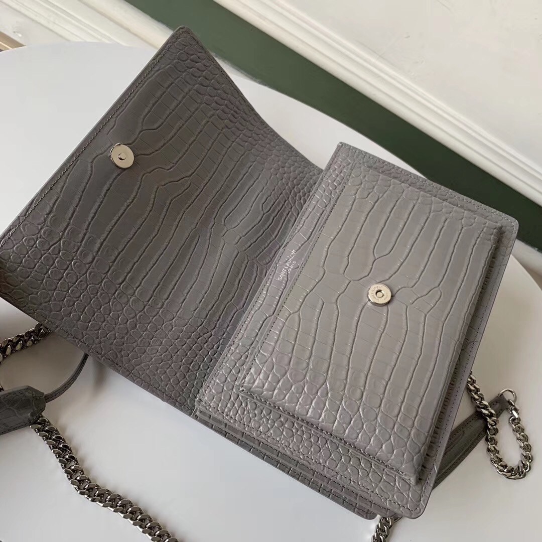 Saint Laurent Sunset Medium Bag In Grey Crocodile Embossed Leather