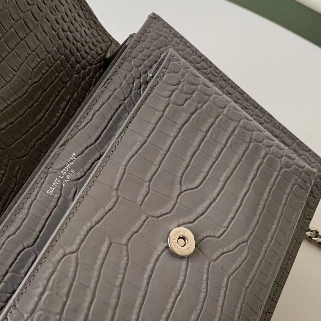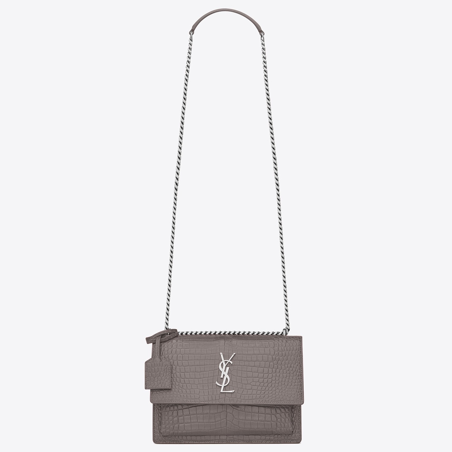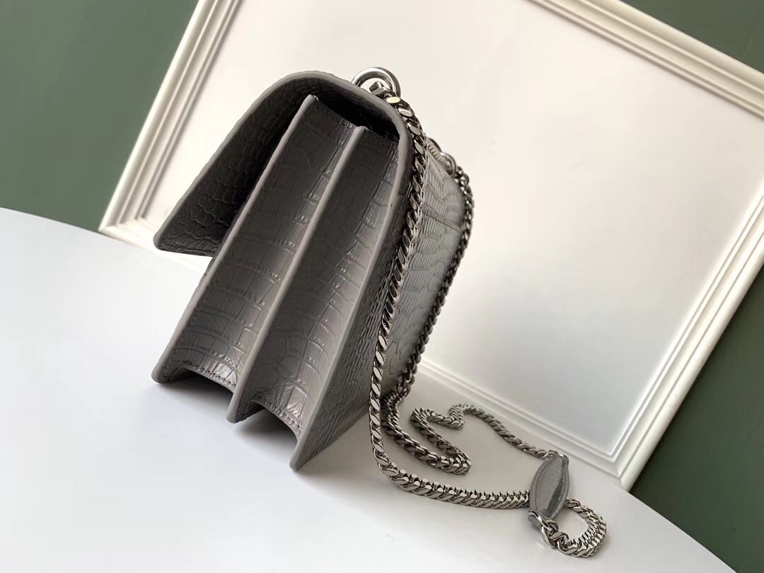 Saint Laurent Sunset Medium Bag In Grey Crocodile Embossed Leather