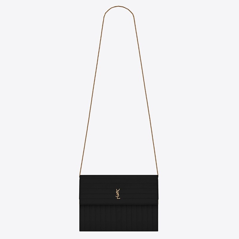 Encapsulating SAINT LAURENT’s timeless design, this Victoire chain shoulder bag is rendered in calfskin leather in a clean-lined silhouette. Quilted with matelass?? stitching, this carryall is finished with the iconic YSL logo for a branded uplift.