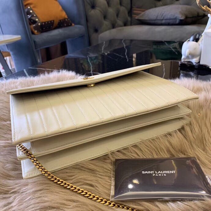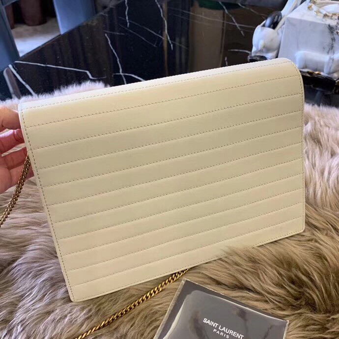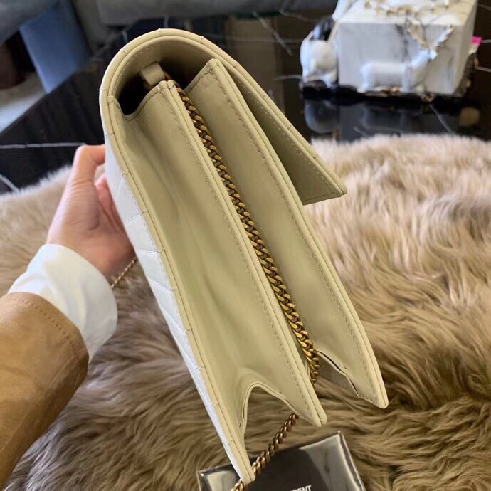 Encapsulating SAINT LAURENT’s timeless design, this Victoire chain shoulder bag is rendered in calfskin leather in a clean-lined silhouette. Quilted with matelass?? stitching, this carryall is finished with the iconic YSL logo for a branded uplift.
