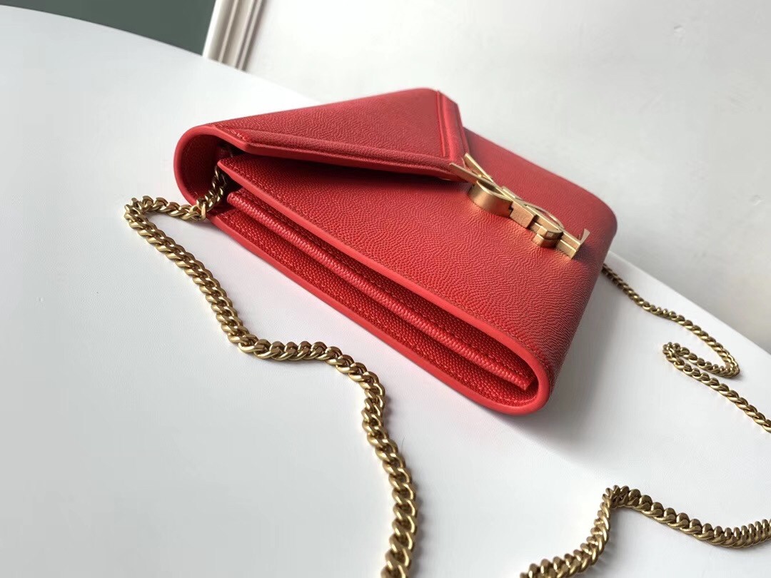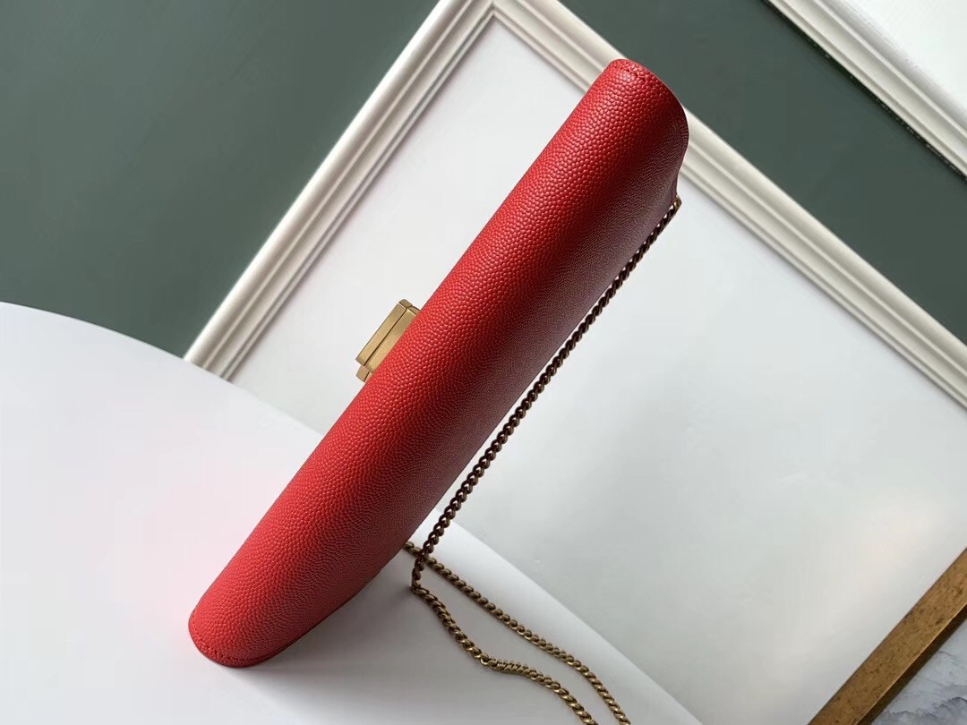 Downsized to amplify its dusk-to-dawn appeal, Saint Laurent’s Cassandra style is reintroduced for Autumn/Winter 2019 as a wallet bag. Encompassing a series of card slots, a zipped interior compartment and a slip pocket, every essential has a place. Characterised by its logo hardware, just flick the L to unlock the flap front and access its interior delights.