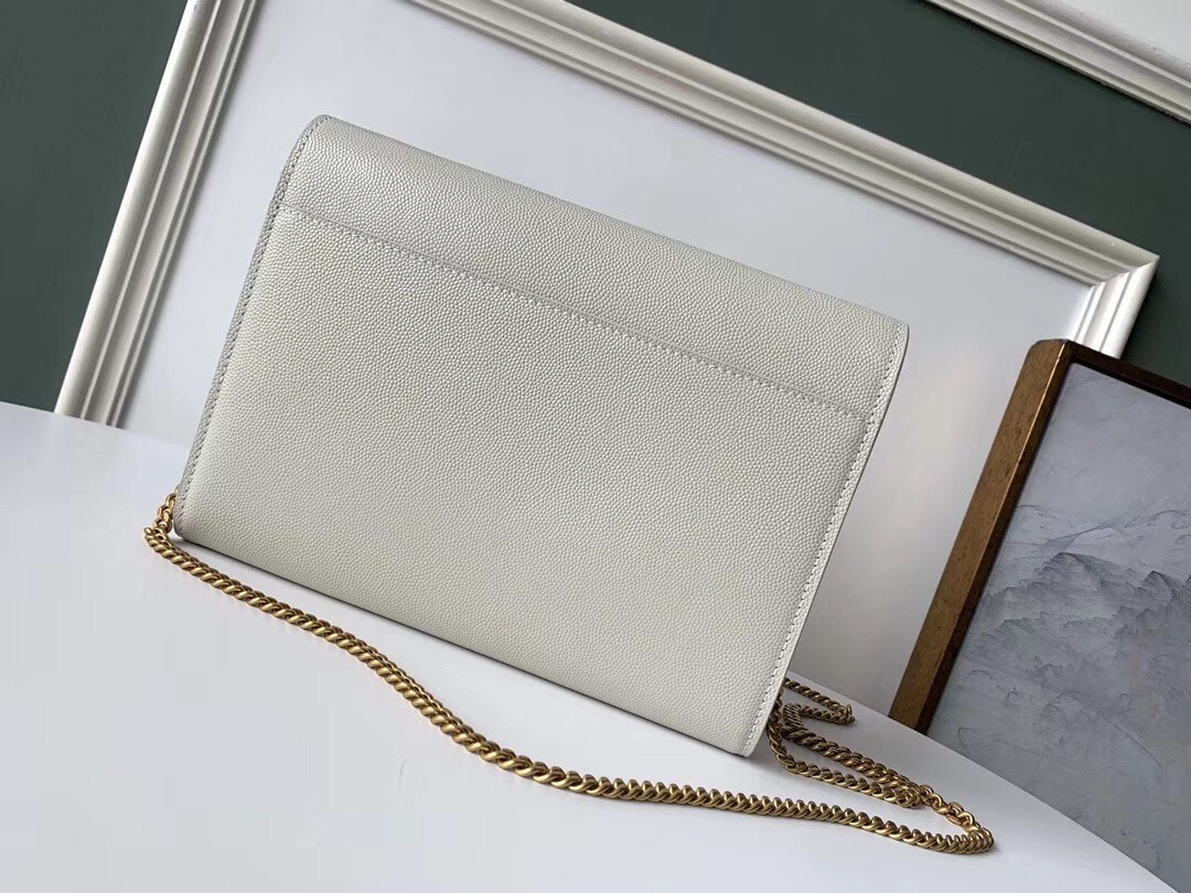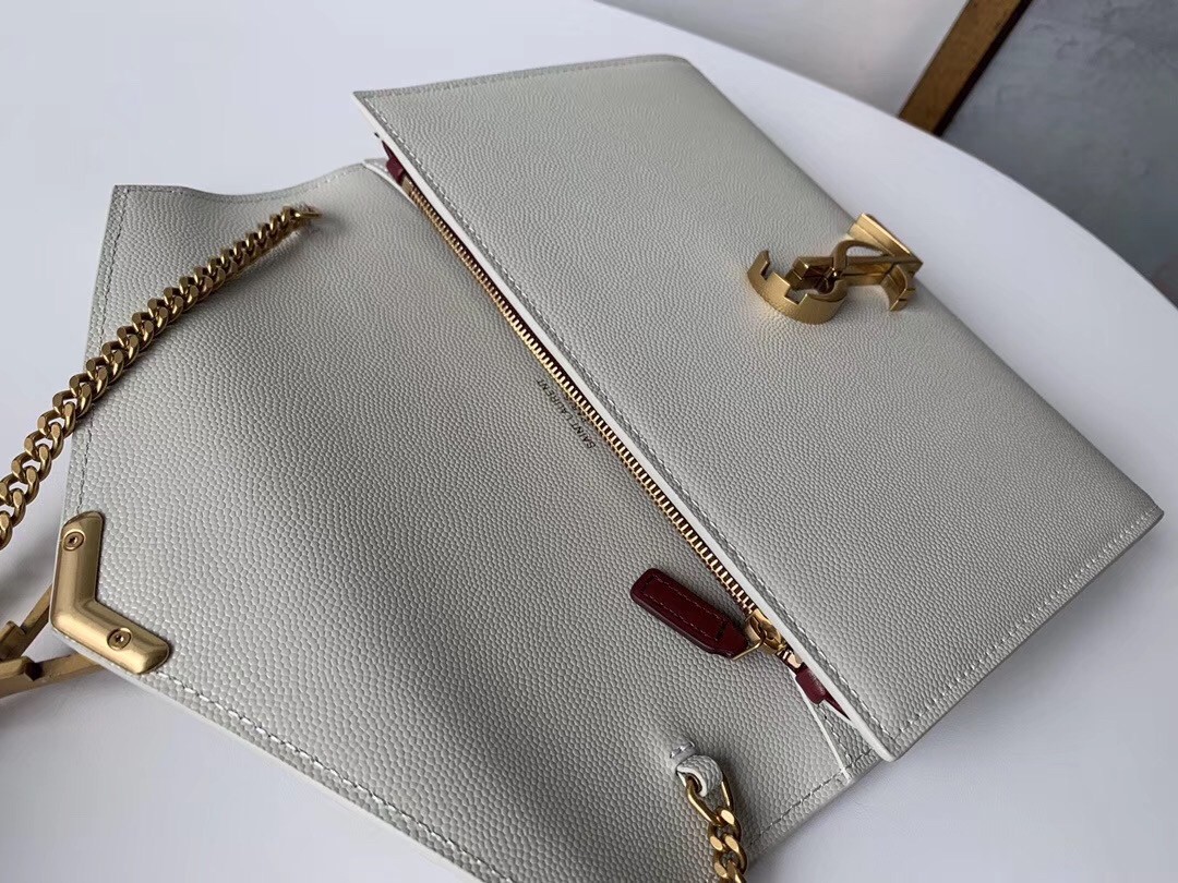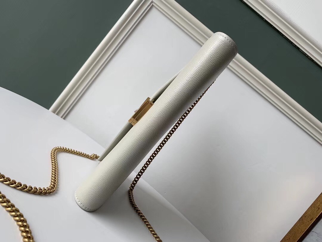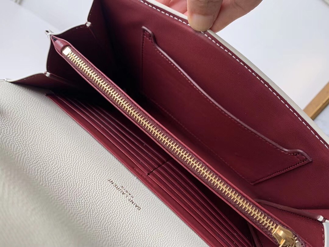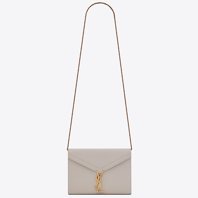 Downsized to amplify its dusk-to-dawn appeal, Saint Laurent’s Cassandra style is reintroduced for Autumn/Winter 2019 as a wallet bag. Encompassing a series of card slots, a zipped interior compartment and a slip pocket, every essential has a place. Characterised by its logo hardware, just flick the L to unlock the flap front and access its interior delights.