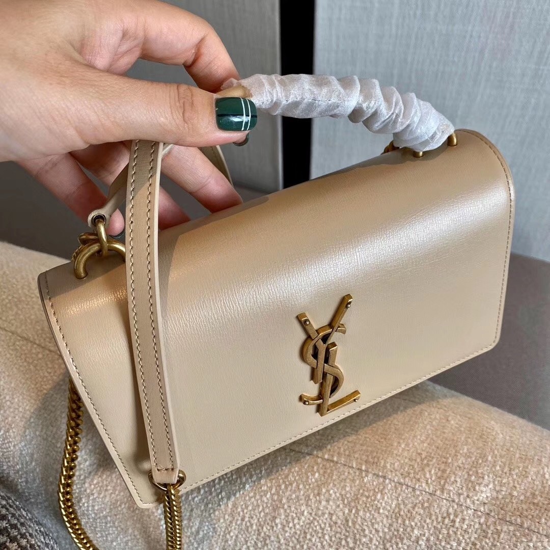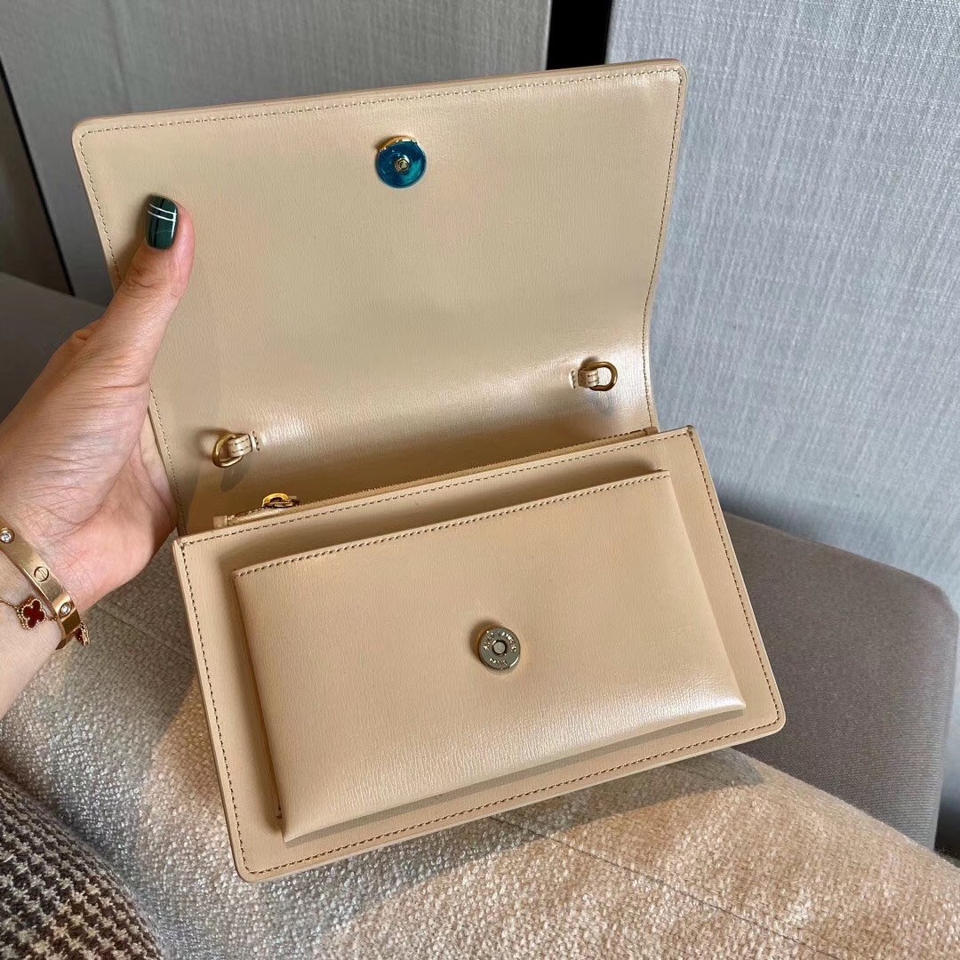 Saint Laurent WOC Sunset Chain Wallet In Taupe Calfskin