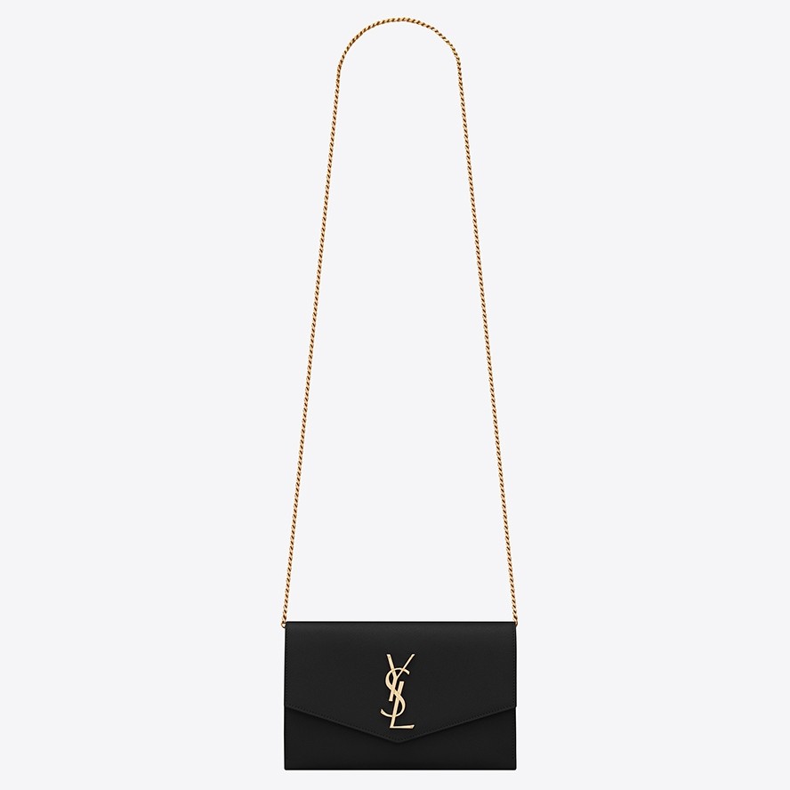 A contemporary classic, Saint Laurent’s Uptown chain bag is instantly recognisable thanks to its iconic YSL monogram in polished metal. Perfectly sized for dusk-to-dawn endeavours, the wallet-style interior keeps cards, phones and other evening essentials safely housed. Carry as a clutch or slip over the shoulder with the optional chain strap.