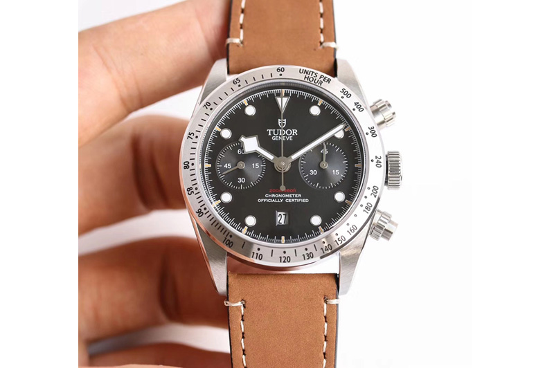 Tudor Heritage 79530 SS Silver Bezel Best Edition Black Dial on Leather Strap A7750