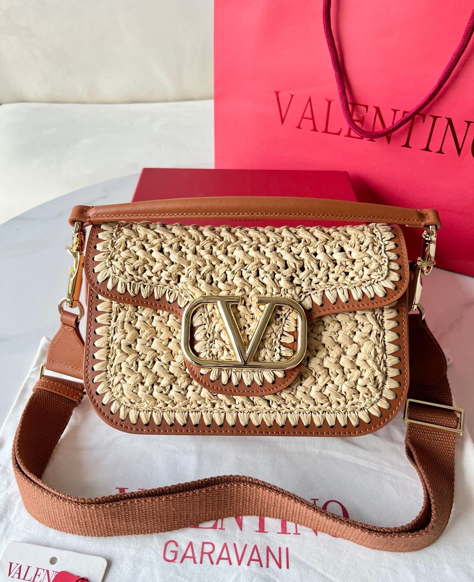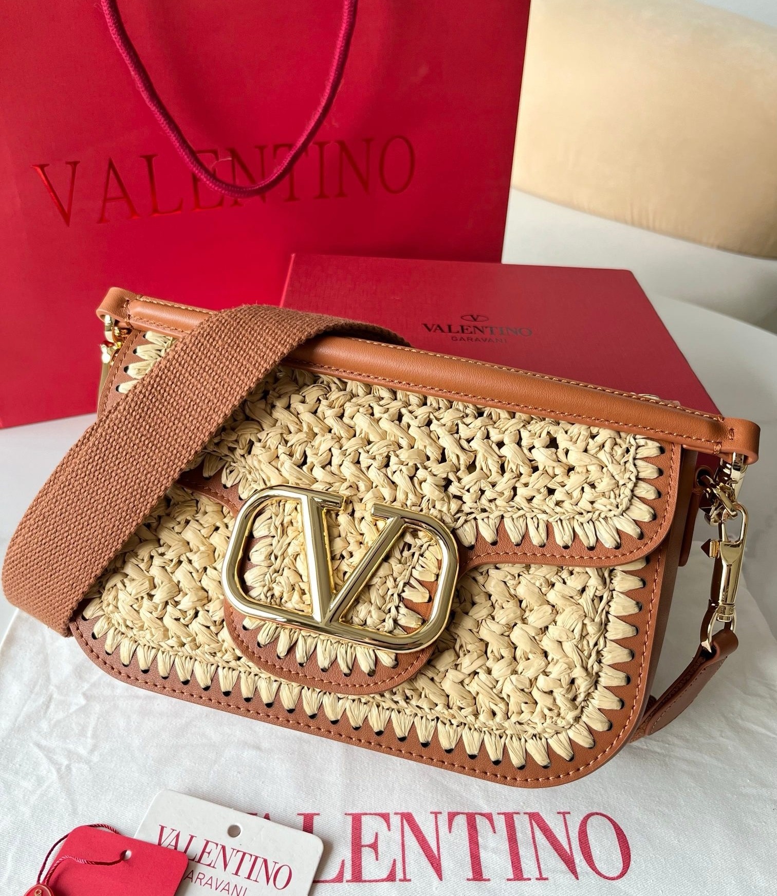 Showcasing the Maison’s design excellence, Valentino Garavani’s Alltime bag will become an everyday essential as soon as it is added to your collection. This rendition of the camera-inspired accessory is crafted from Raffia and leather, with the iconic VLogo motif sitting front and centre in gold-tone hardware further confirming its must-have status.
