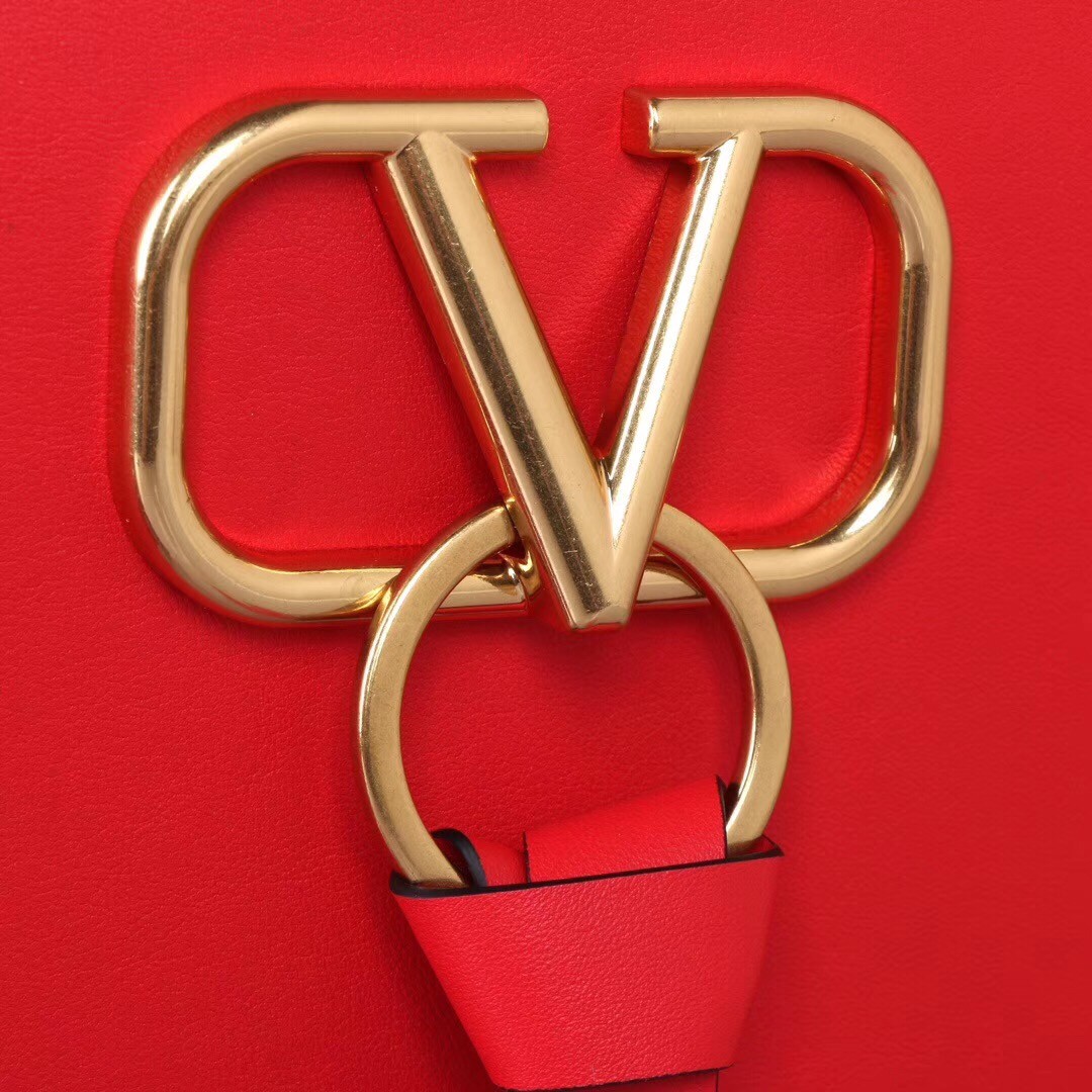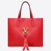 Marking a new release from the brand’s coveted accessories line, this Valentino Garavani tote bag is punctuated with gold-tone VRing hardware, threaded with a calfskin ribbon trim. Italian crafted in smooth leather, the striking palette draws attention to the neat and spacious silhouette. Peek inside to find a detachable pouch for small essentials and subtle Rockstuds, which pay homage to the label’s signature pyramid-shaped details.