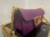 The prominent construction, enriched by the padded workmanship and the smooth leather contributes to the minimal elegance of the Valentino Garavani Loc?? bag. The possibility of detaching the handle by transforming the shoulder bag into a clutch also gives the bag the perfect versatility and functionality for a contemporary lifestyle. Playful but with a retro appeal, this compact bag features a flap with a VLogo Signature clip closure.