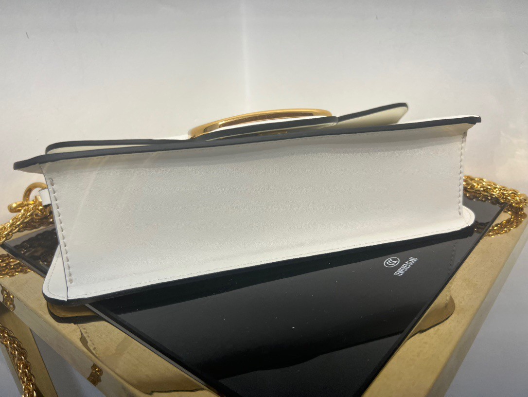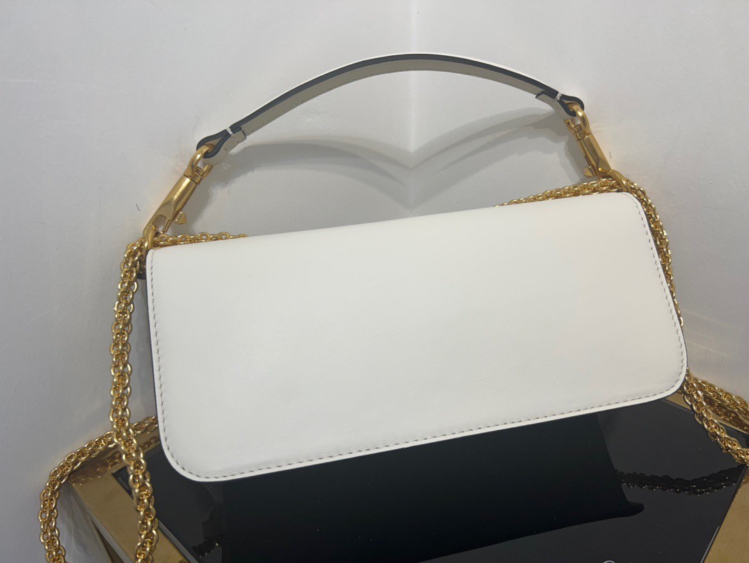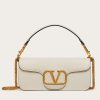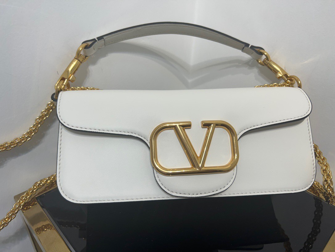 The prominent construction, enriched by the padded workmanship and the smooth leather contributes to the minimal elegance of the Valentino Garavani Loc?? bag. The possibility of detaching the handle by transforming the shoulder bag into a clutch also gives the bag the perfect versatility and functionality for a contemporary lifestyle. Playful but with a retro appeal, this compact bag features a flap with a VLogo Signature clip closure.