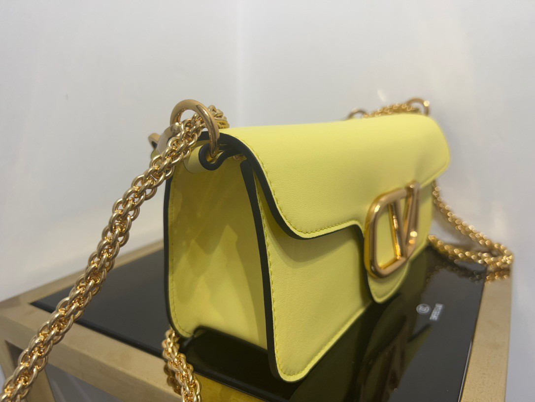 The prominent construction, enriched by the padded workmanship and the smooth leather contributes to the minimal elegance of the Valentino Garavani Loc?? bag. The possibility of detaching the handle by transforming the shoulder bag into a clutch also gives the bag the perfect versatility and functionality for a contemporary lifestyle. Playful but with a retro appeal, this compact bag features a flap with a VLogo Signature clip closure.