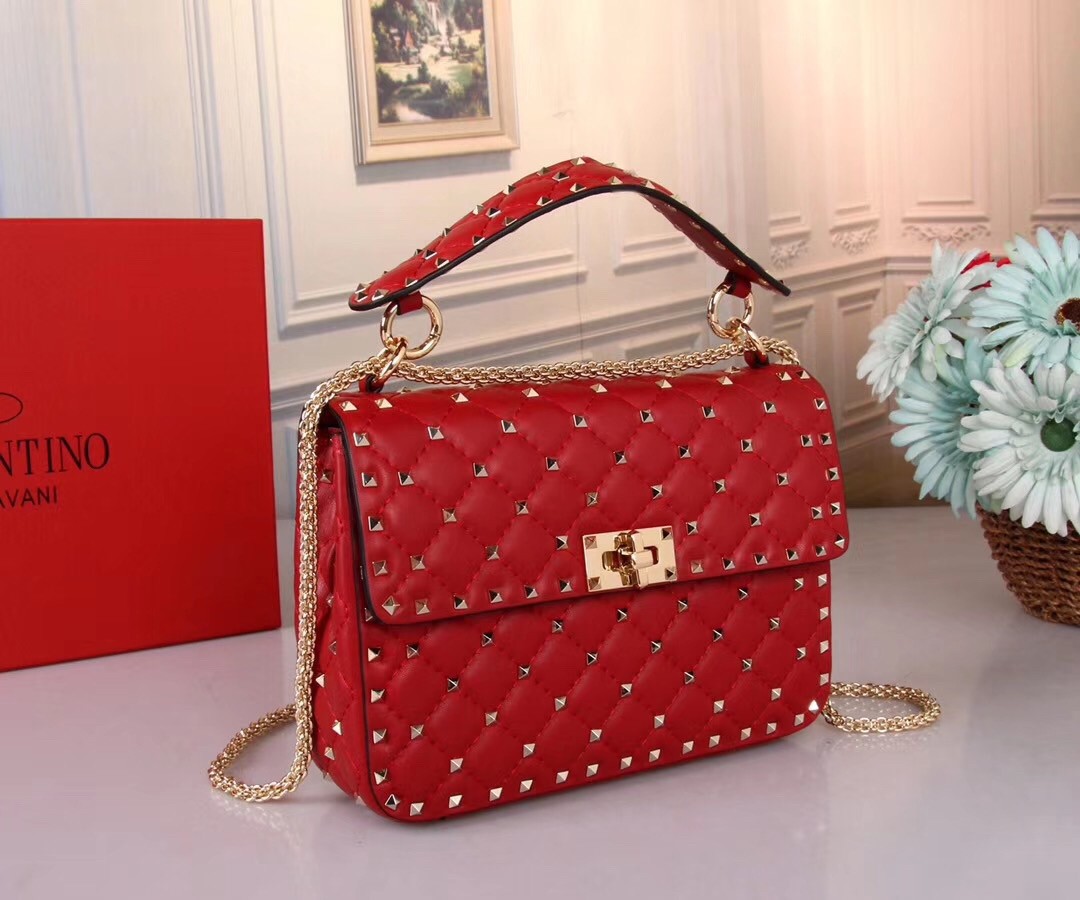 Valentino Garavani reimagines its signature pyramid studs with the Rockstud Spike shoulder bag. Classic quilting nods to timeless style, while the twist lock fastening ensures a truly modern finish. Equipped with an adjustable chain shoulder strap and removable handle, its multi-tasking credentials make it the perfect day-to-night sidekick.