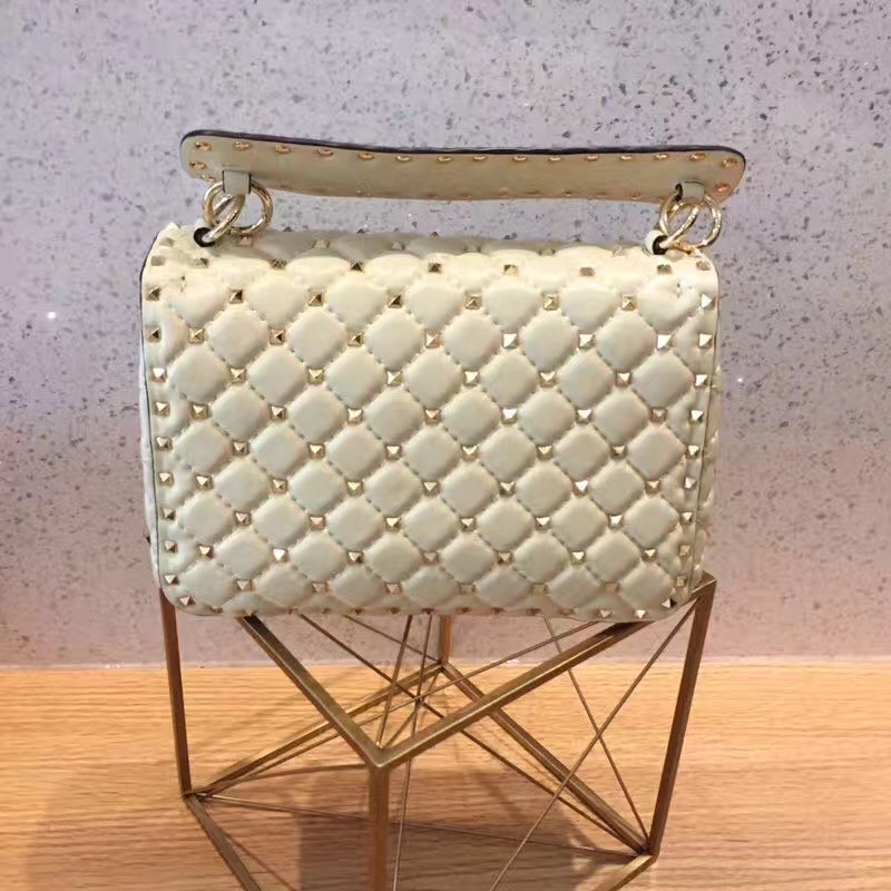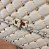 Valentino Garavani reimagines its signature pyramid studs with the Rockstud Spike shoulder bag. Classic quilting nods to timeless style, while the twist lock fastening ensures a truly modern finish. Equipped with an adjustable chain shoulder strap and removable handle, its multi-tasking credentials make it the perfect day-to-night sidekick.