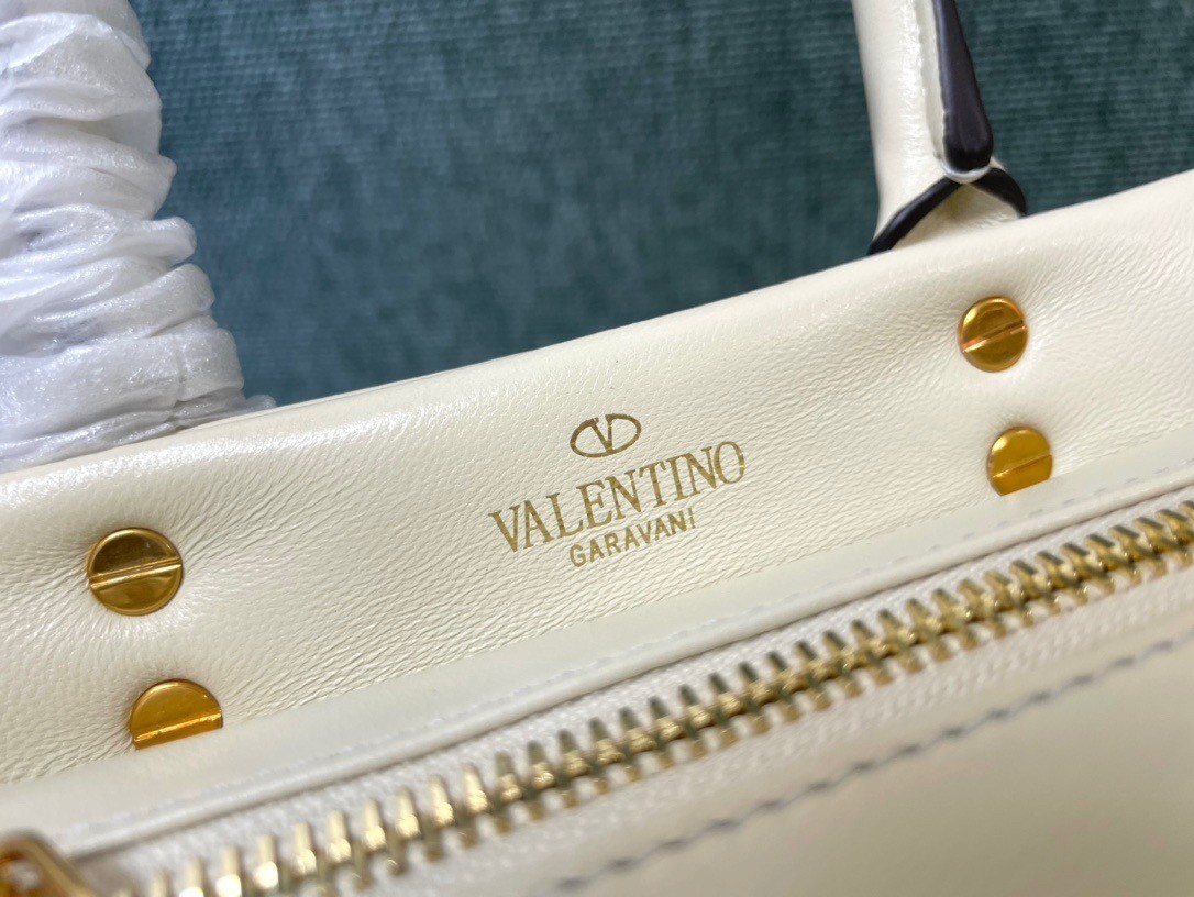 Valentino One Stud Top Handle Bag In White Nappa Leather
