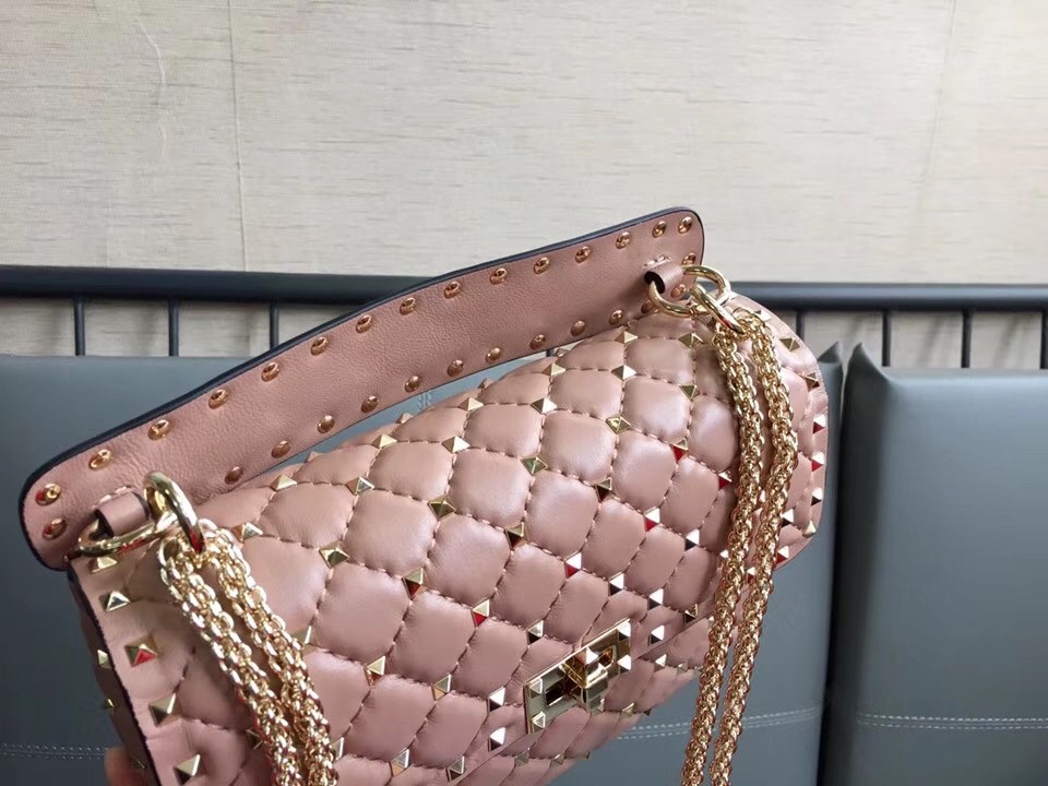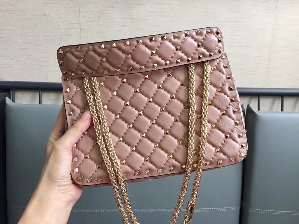 Valentino Garavani first introduced the now-iconic ‘Rockstuds’ to contrast the soft romanticism of its beautiful designs – the effect is so evident on this ‘Spike’ bag, where the gilded embellishments glow against delicate blush leather. It’s sized to fit your essentials, plus a notebook or tablet. Carry it by the studded top handle or over your shoulder.