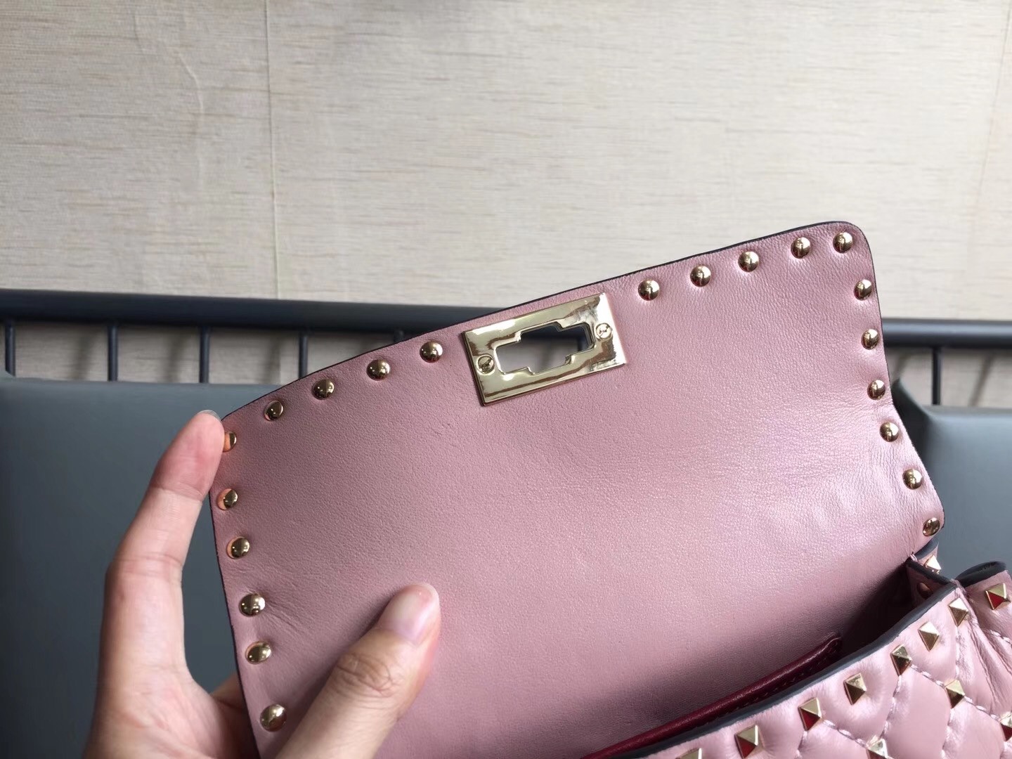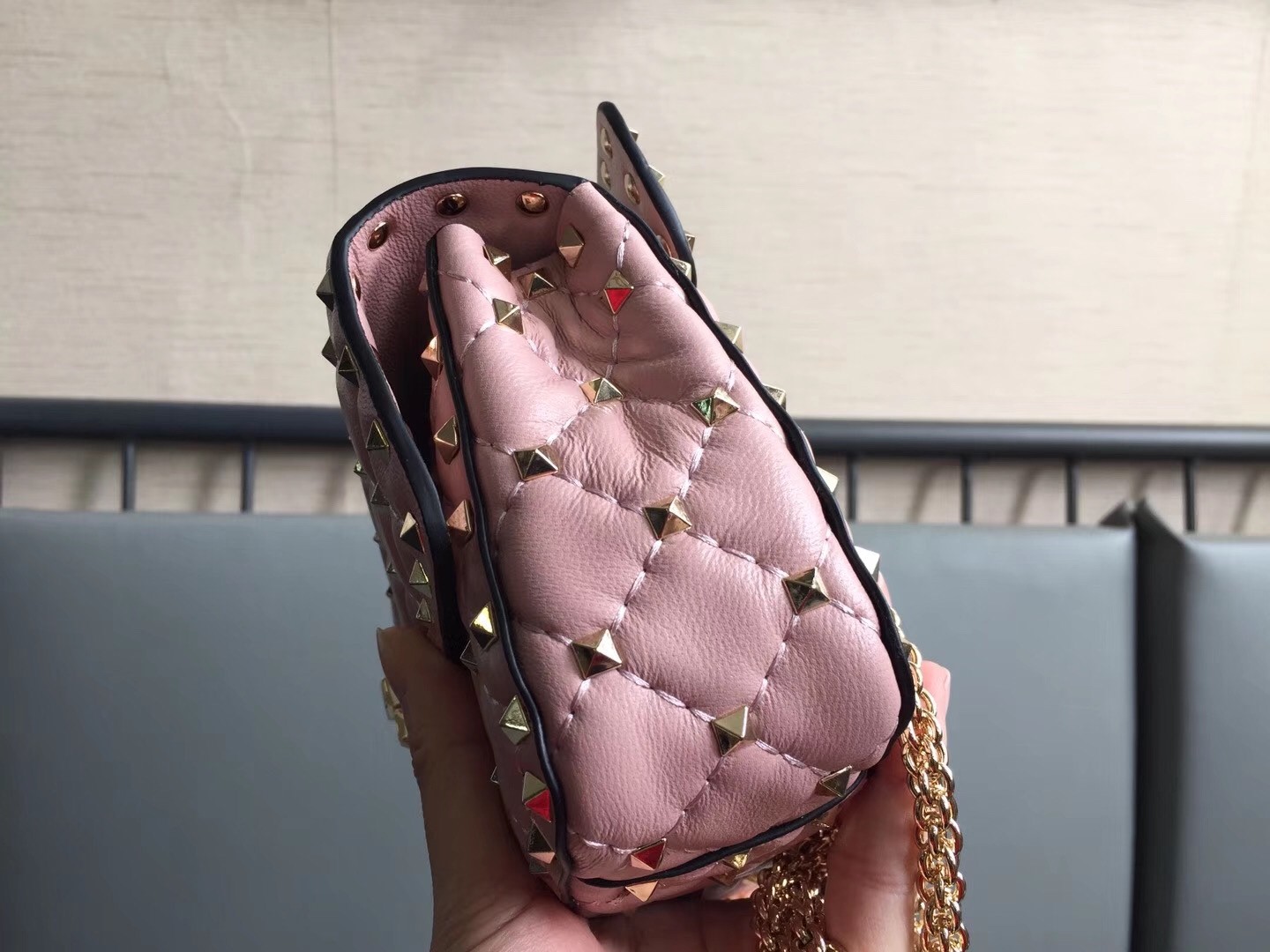 – Platinum-finish studs and hardware