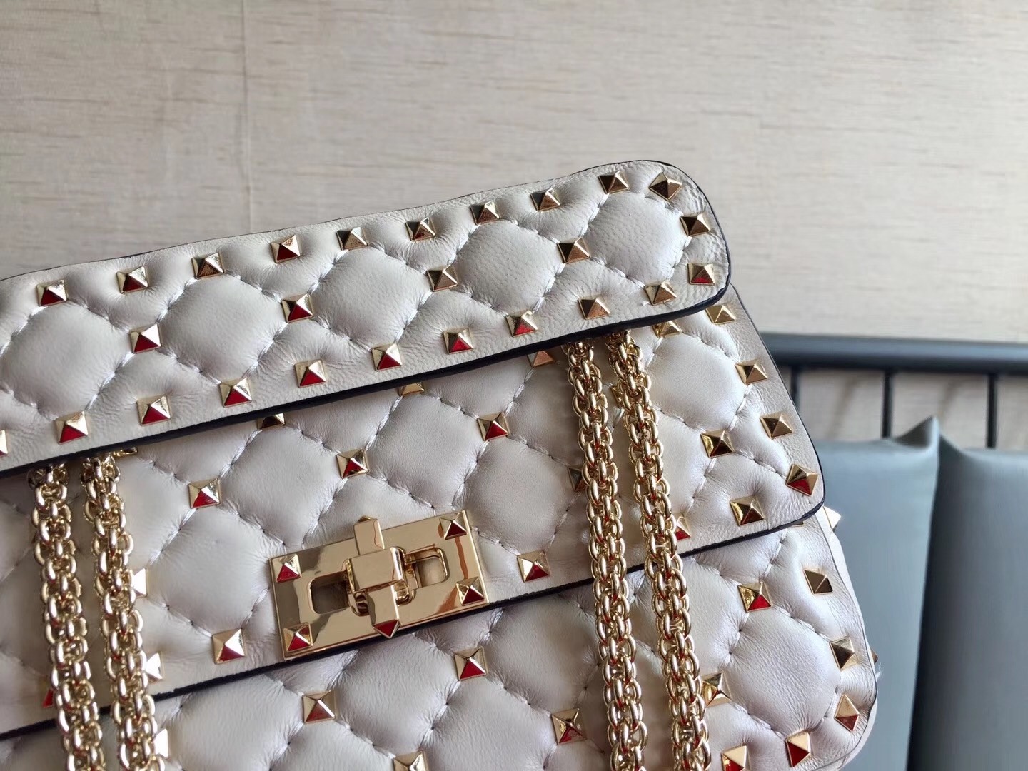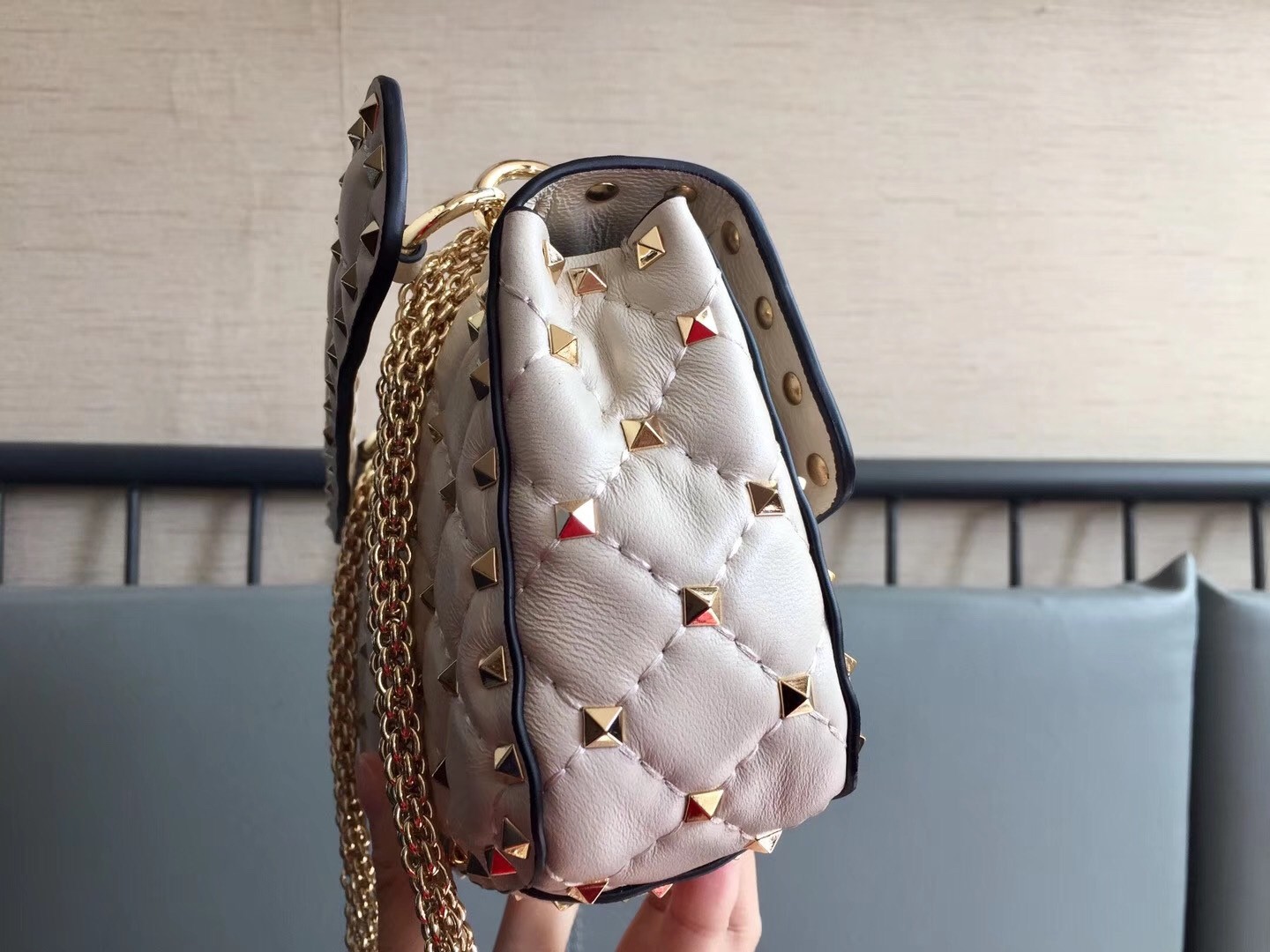 – Platinum-finish studs and hardware