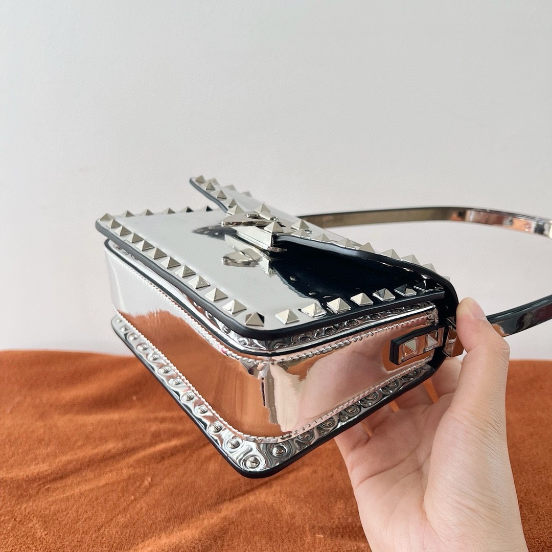 Valentino Garavani’s Rockstuds are an emblem so widely adored that they almost need no introduction ?C though the small Rockstud23 shoulder bag warrants its own grand entrance. The ideal size for every day, it’s designed in a petite elongated silhouette that’ll stand the test of time, while the distinctive hardware that trims the edges helps place it in powerfully feminine territory.