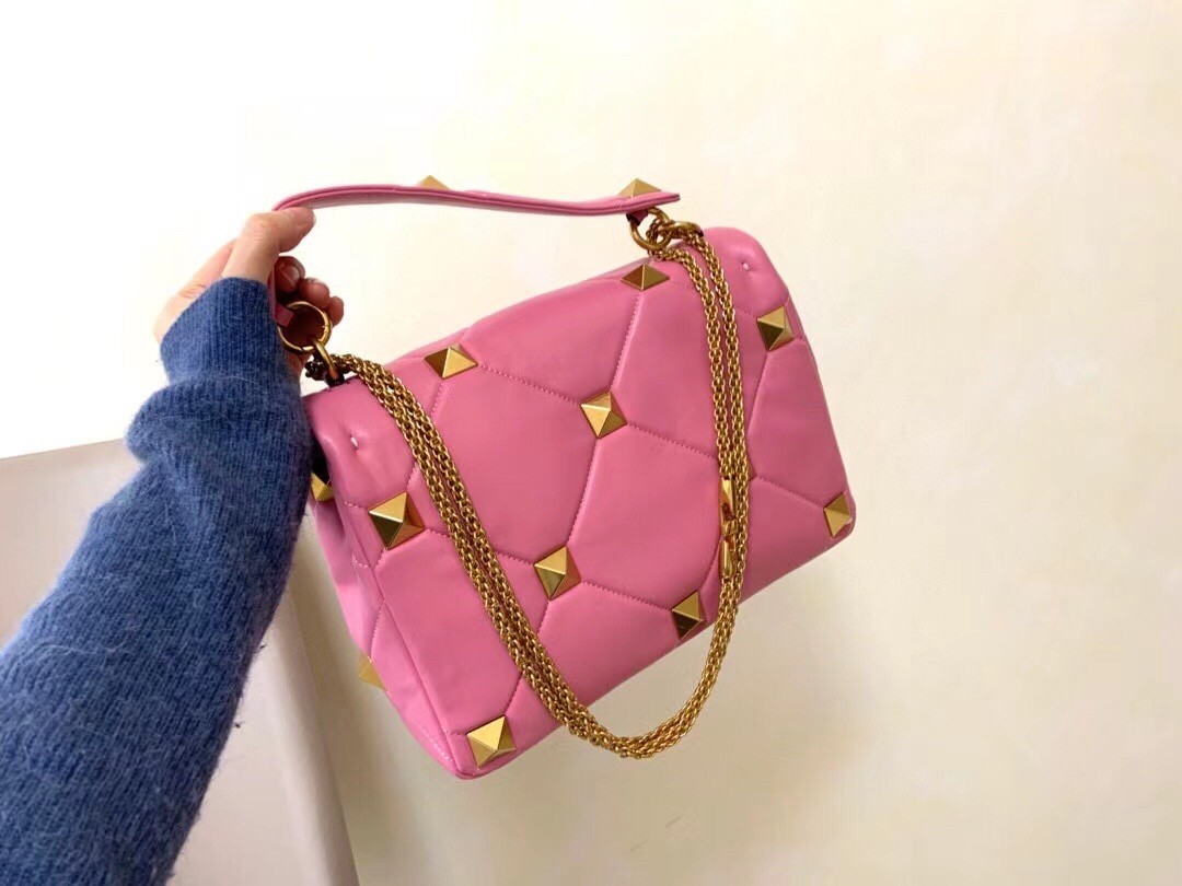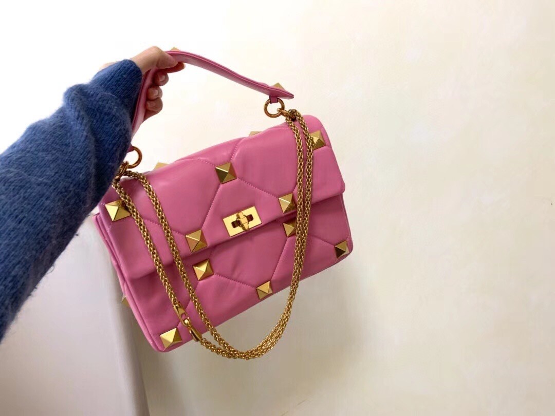 Be the first to review “Valentino Roman Stud Chain Bag In Pink Lambskin”