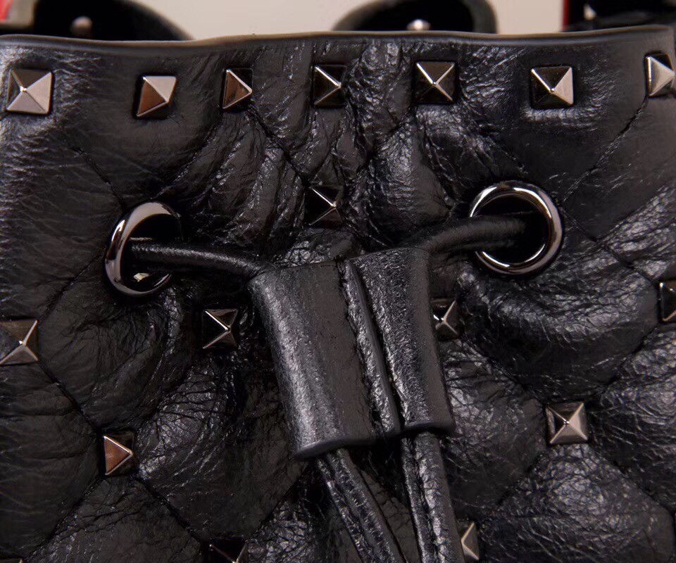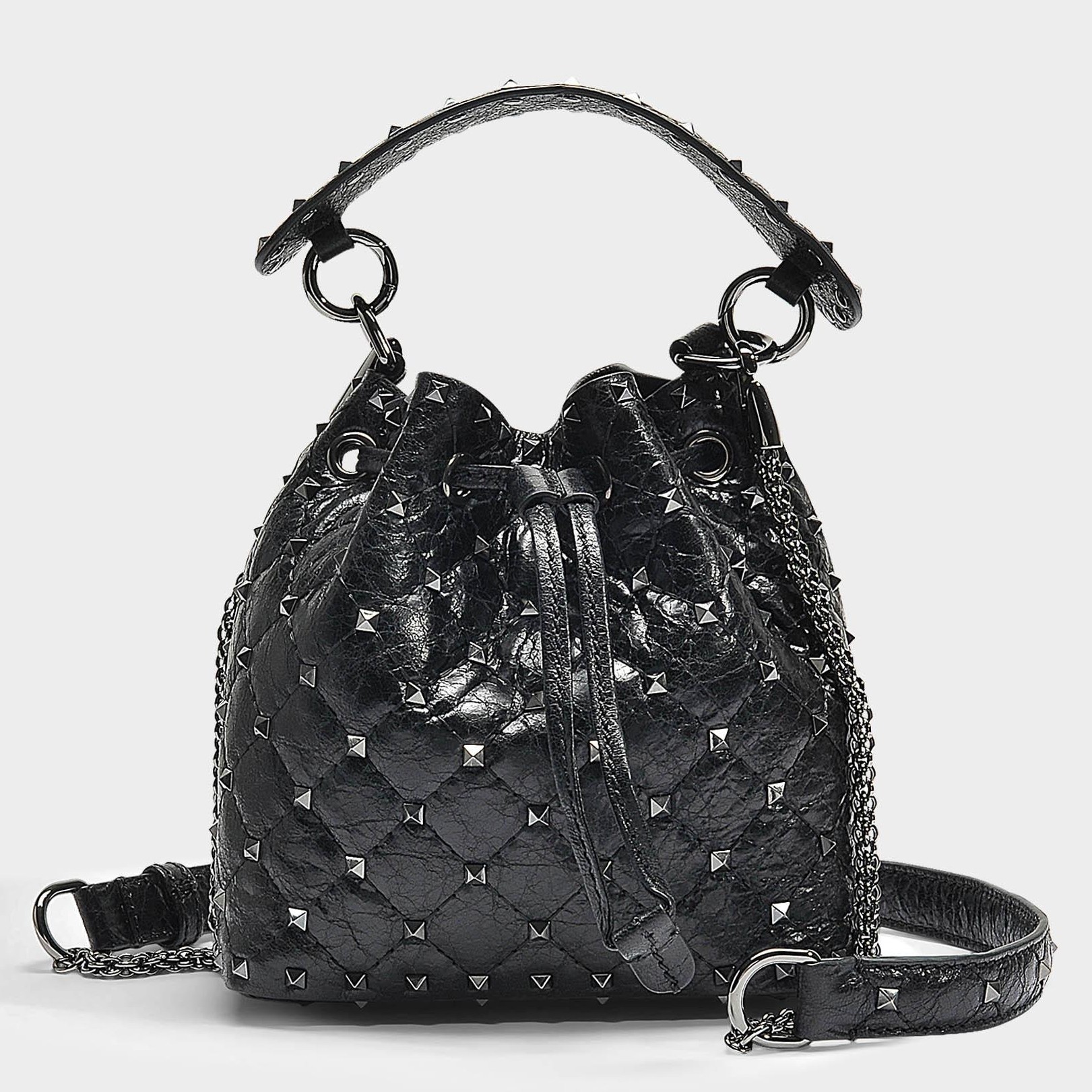 Symbolic of Italian luxury, Valentino crafts plush accessories using age-honoured techniques and an unrivalled sense of femininity. Designed with a drawstring fastening, this small bucket bag’s textured leather is punctuated with the label’s iconic Rockstuds in gun metal-toned hardware. Fitted with two card slots inside, it’s effortlessly carried by the top handle or across the body with the optional strap