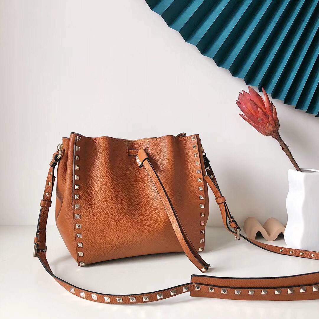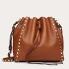 Valentino Garavani’s bucket bag is outlined with rows of Rockstuds that are polished and applied by hand at the brand’s atelier. It’s been made in Italy from unlined textured-leather, so it scrunches effortlessly at the drawstring brim. The small size will fit all the essentials, including a continental wallet or large smart phone.