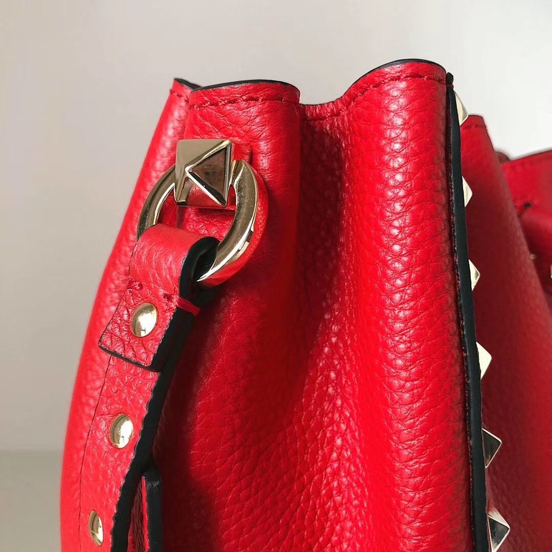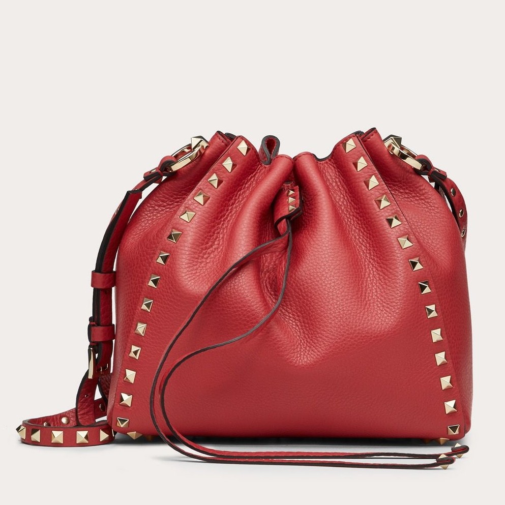 Be the first to review “Valentino Small Rockstud Bucket Bag In Red Grained Calfskin”