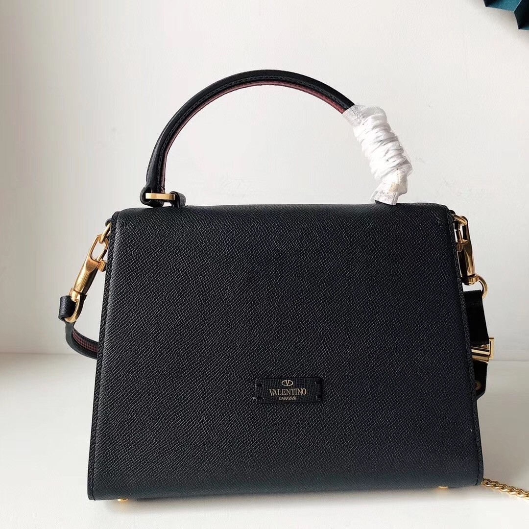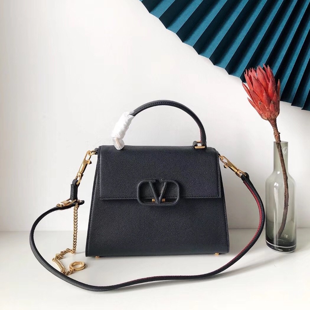 Valentino Small Vsling Handbag In Black Grainy Calfskin