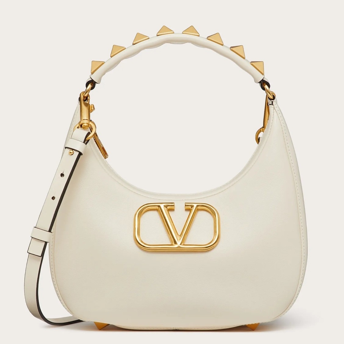 Valentino Garavani’s Stud Sign hobo bag is amongst the latest releases of the house’s coveted Roman Stud line. A new iteration of the namesake’s signature Rockstud first launched over a decade ago; the Roman Stud is a maxi update of this punkish embellishment, adorning the bag’s handle along with the famous VLOGO plaque in the centre. Carry yours by the removable cross-body strap or sling it over your shoulder to display this house icon with pride.