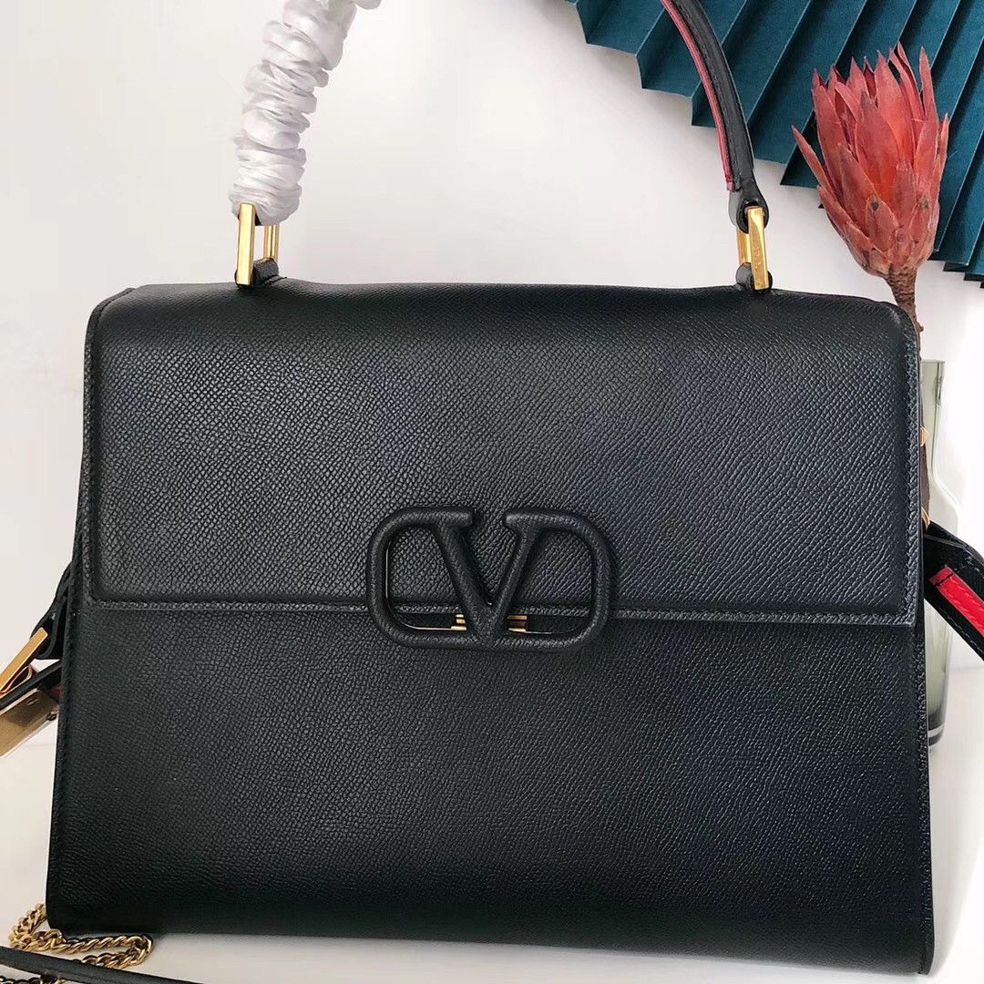 Valentino Garavani’s ‘VSLING’ top handle large bag is made from grainy calfskin leather and updated in a scaled-down size that’s great for nights out. It has a structured silhouette and is detailed with a tonal logo plaque for a clean, streamlined look. Attach the chain-trimmed strap to carry it on your shoulder.