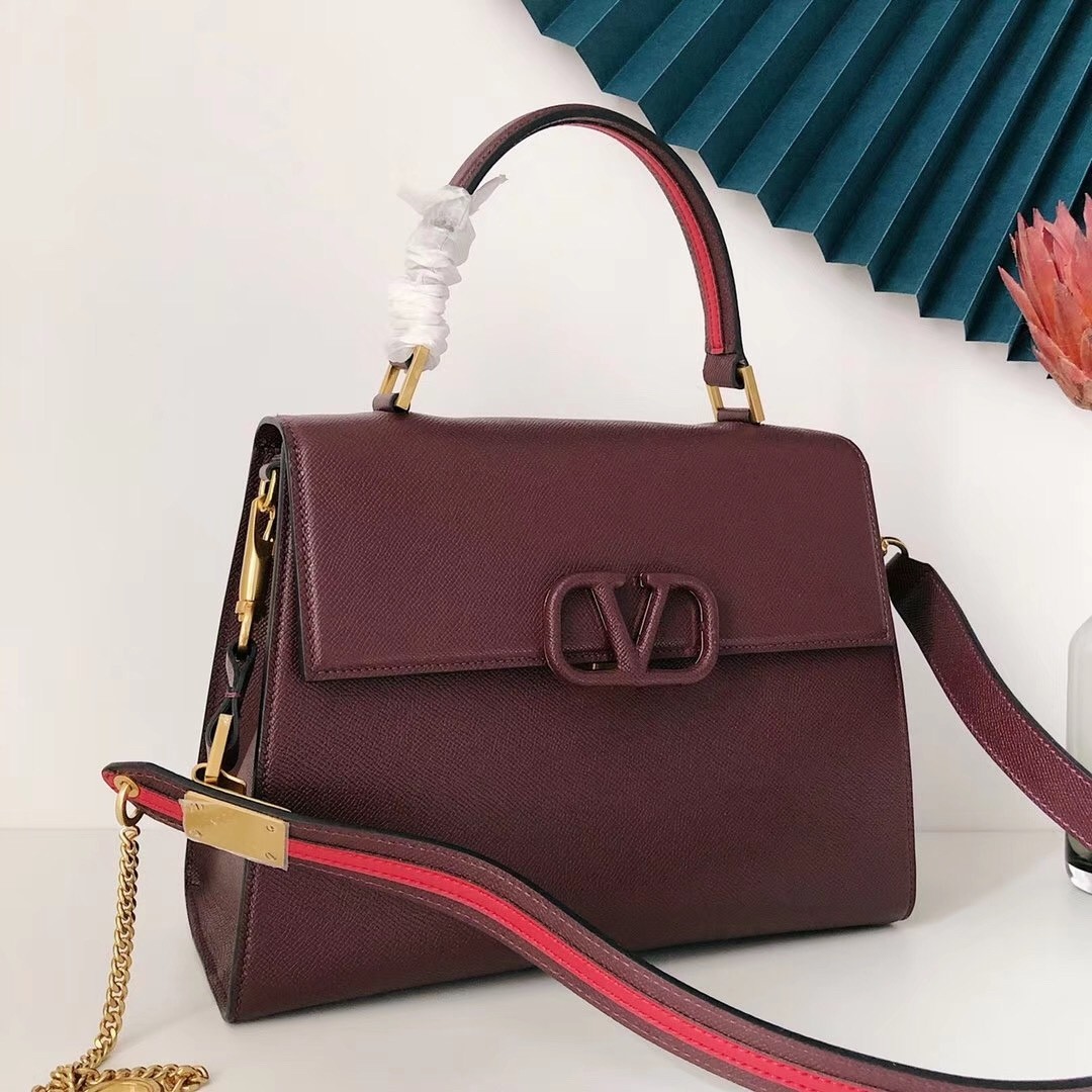 Valentino Garavani’s ‘VSLING’ top handle large bag is made from grainy calfskin leather and updated in a scaled-down size that’s great for nights out. It has a structured silhouette and is detailed with a tonal logo plaque for a clean, streamlined look. Attach the chain-trimmed strap to carry it on your shoulder.