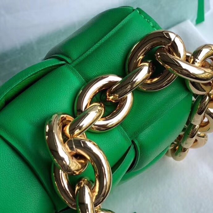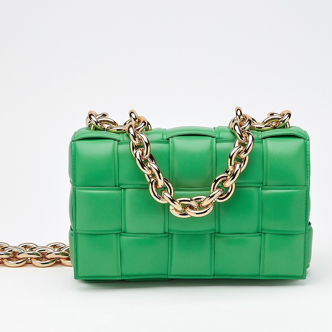 Daniel Lee takes Bottega Veneta’s signature intrecciato weave and reworks it again – this time using padded strips of leather to create a puffy silhouette. This ‘Cassette’ shoulder bag unlocks to reveal a spacious interior with a zipped pocket. Match any jewelry to the chunky gold chain strap, which happens to be another new addition for Pre-Fall ’20.