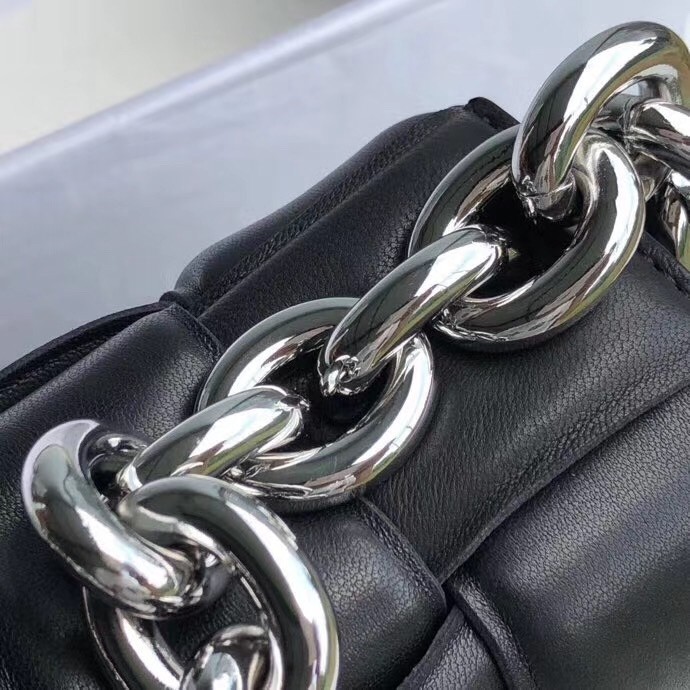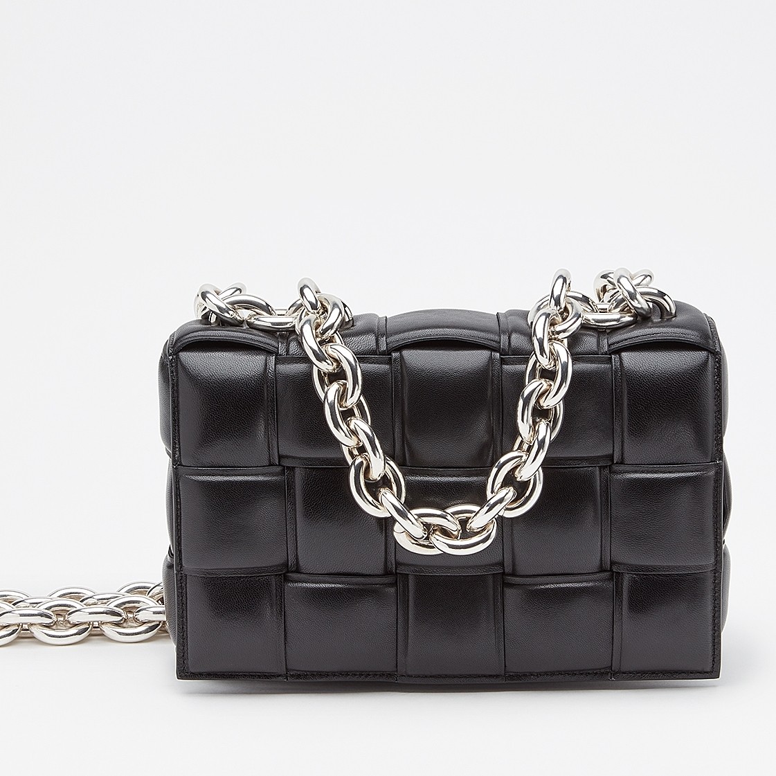 Daniel Lee takes Bottega Veneta’s signature intrecciato weave and reworks it again – this time using padded strips of leather to create a puffy silhouette. This ‘Cassette’ shoulder bag unlocks to reveal a spacious interior with a zipped pocket. Match any jewelry to the chunky gold chain strap, which happens to be another new addition for Pre-Fall ’20.