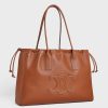 Bolsa Celine Cabas Drawstring Cuir Triomphe em pele de bezerro castanha