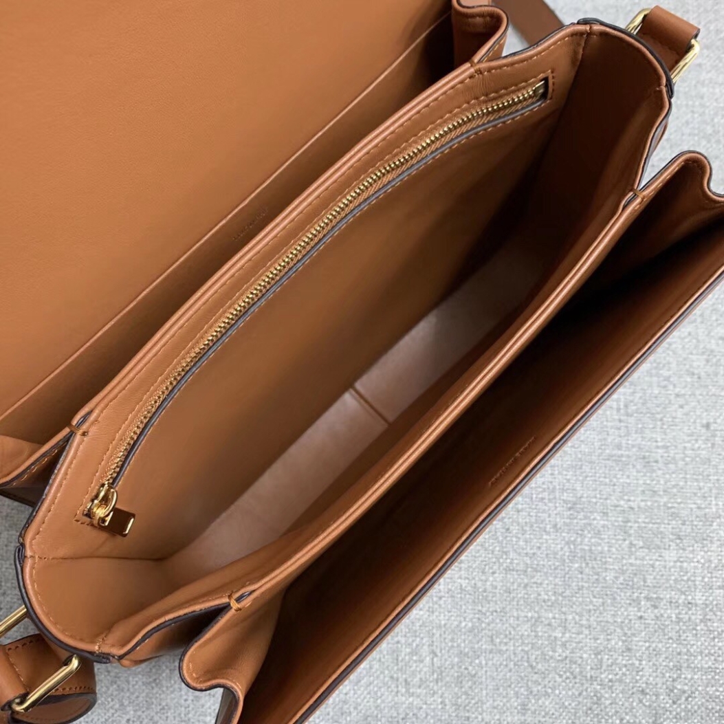 Sleek, modern, and sophisticated are all words you could use to describe Celine’s Triomphe bag. However, the style’s eye-catching yet versatile design is what really makes it poised to be the next big It bag. The overall design has been kept streamlined and minimalistic, but the game changer is the latest double C lock crafted in the center. The double C is made in gold hardware and it’s engraved with the words: ‘Celine Paris’.