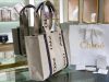 Neutral bags are key for Spring ’21, and this Woody tote seen on Chloé’s runway stood out to our buyers as one of the chicest and most versatile options. Made from water-resistant cotton-canvas, it has a spacious, rectangular silhouette trimmed with leather and logo-printed webbing. The top handles are long enough to carry comfortably over your shoulder.