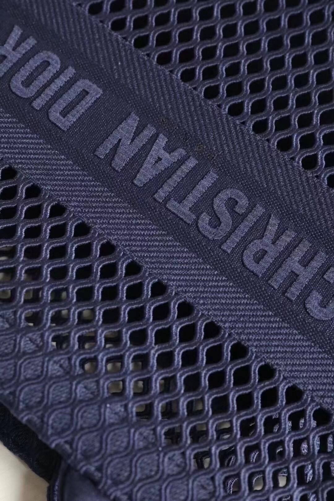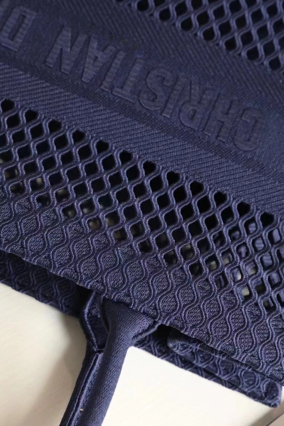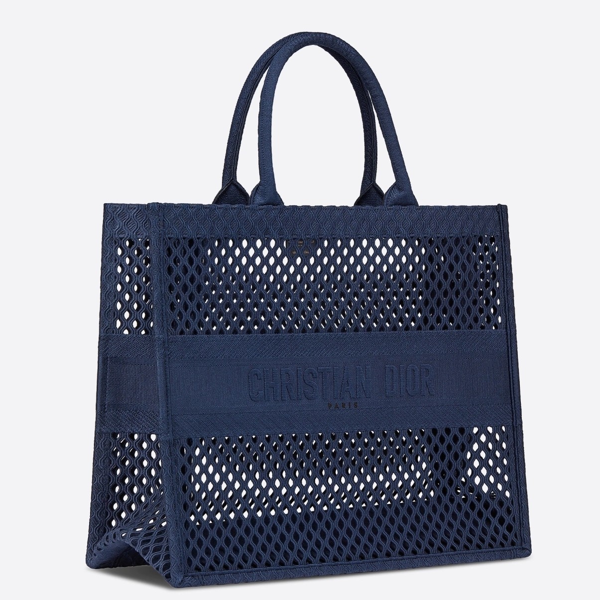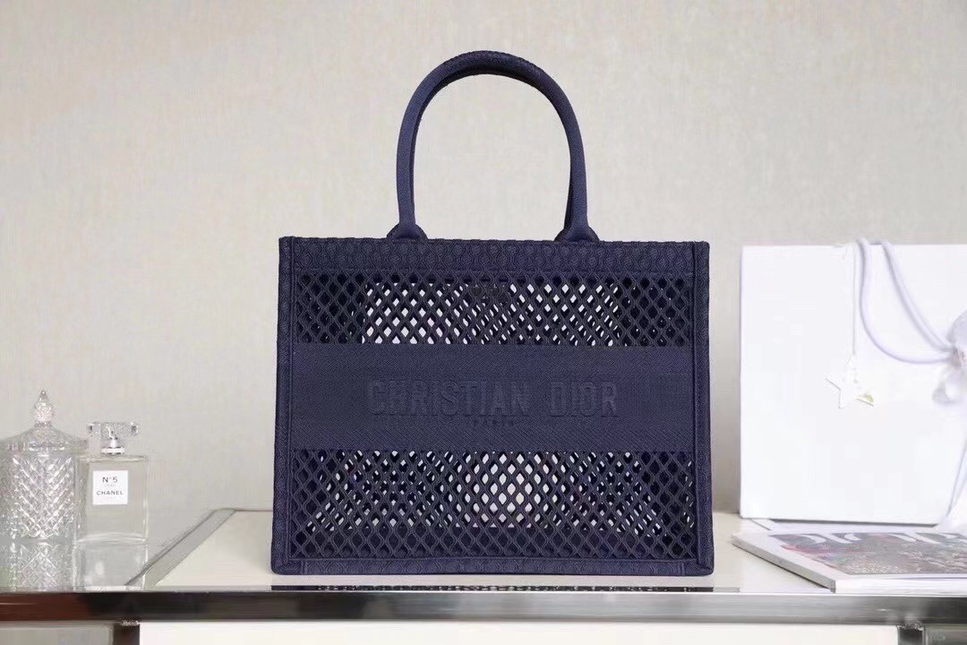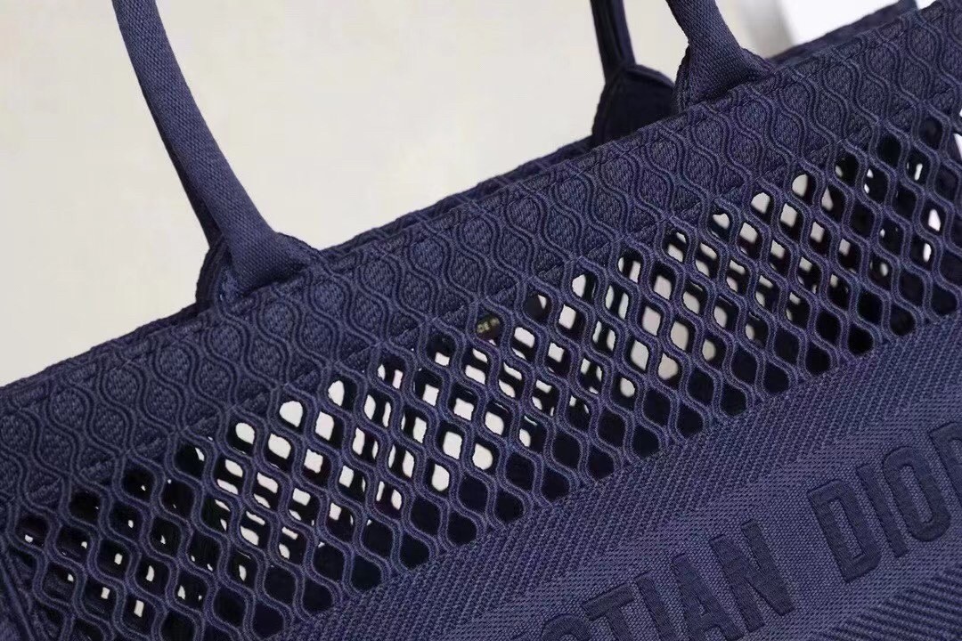 The Dior Book Tote, an original style introduced by Dior’s Creative Director Maria Grazia Chiuri, has become a staple of the Dior aesthetic. Ideally designed to carry all your daily essentials, the large shape is crafted in blue cotton that has been embroidered with a mesh effect and boasts a ‘Christian Dior’ signature on the front. This carryall is a perfect example of the Dior savoir-faire.