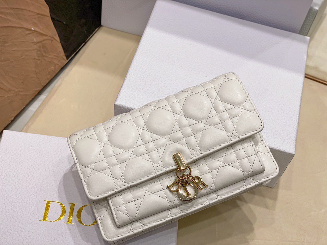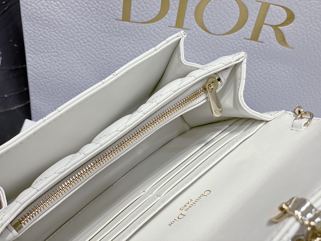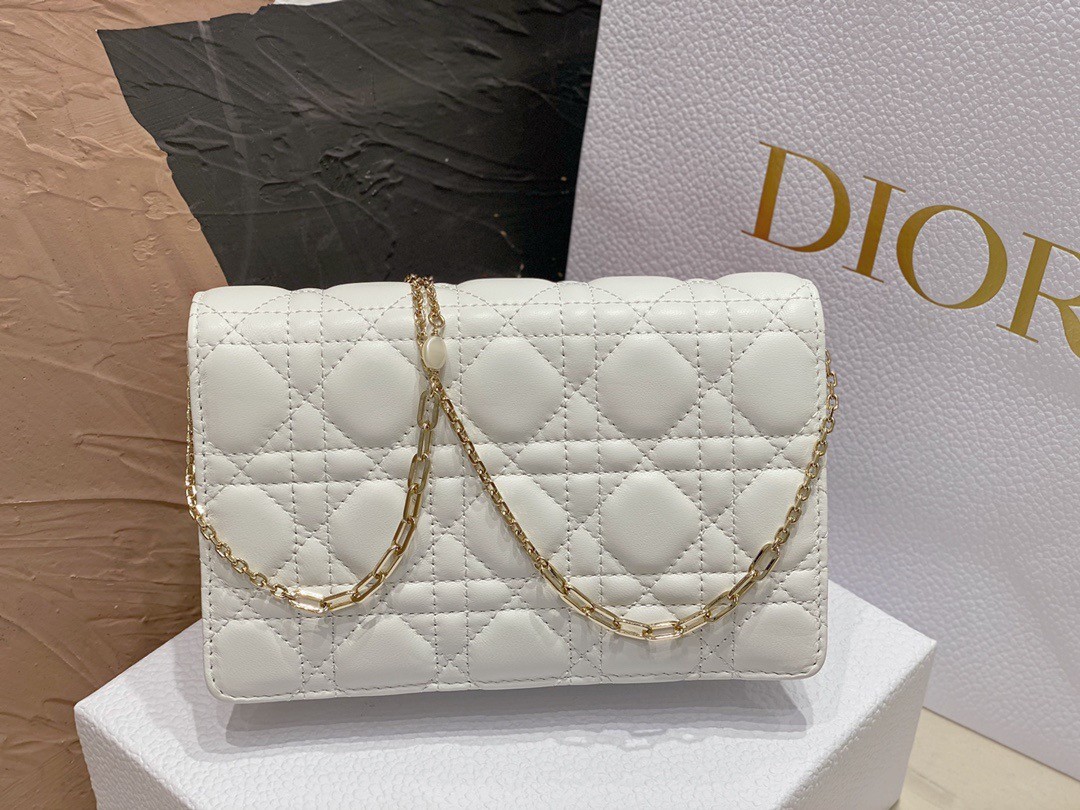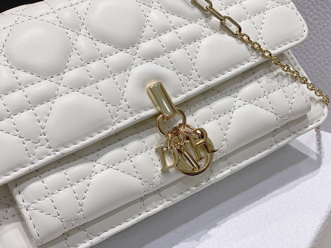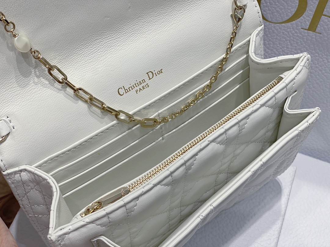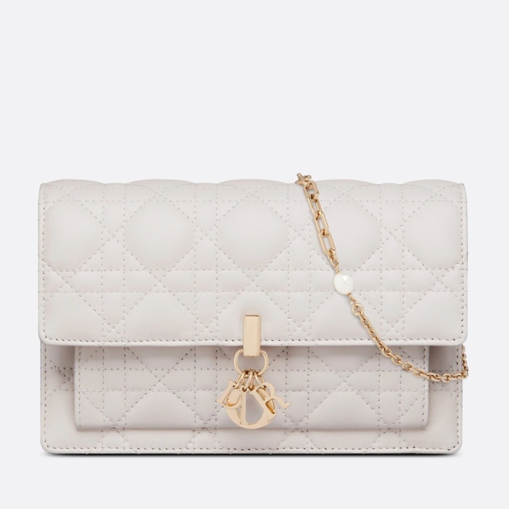 The Lady Dior pouch is a compact yet spacious companion. Crafted in lambskin with Cannage stitching, it is embellished with a ‘D.I.O.R.’ charm for a chic and timeless allure. Thanks to its numerous compartments, the functional accessory can accommodate all the daily essentials. Its jewel chain allows it to be worn over the shoulder or crossbody.