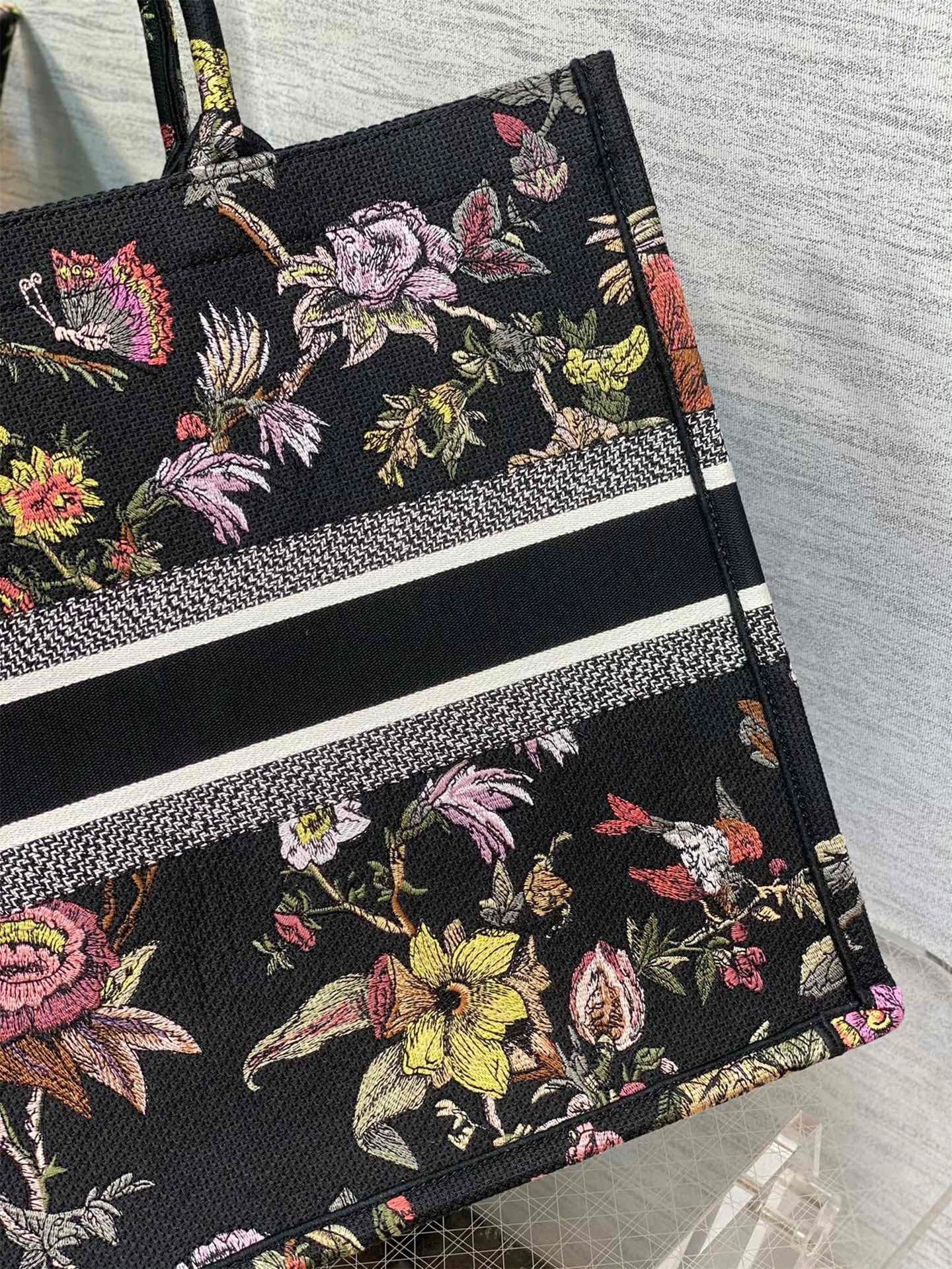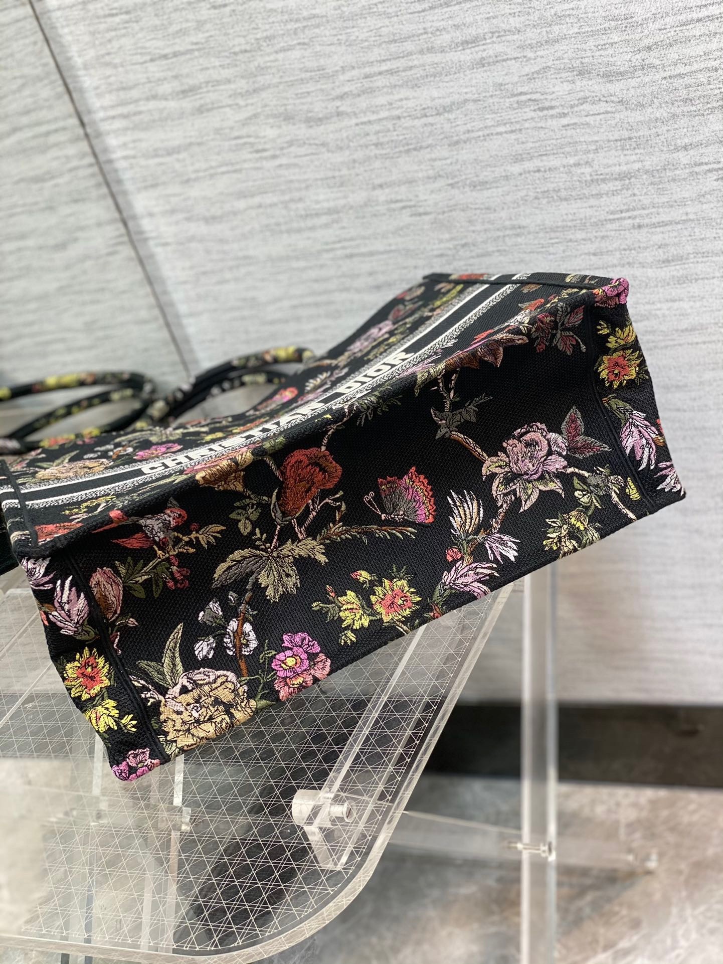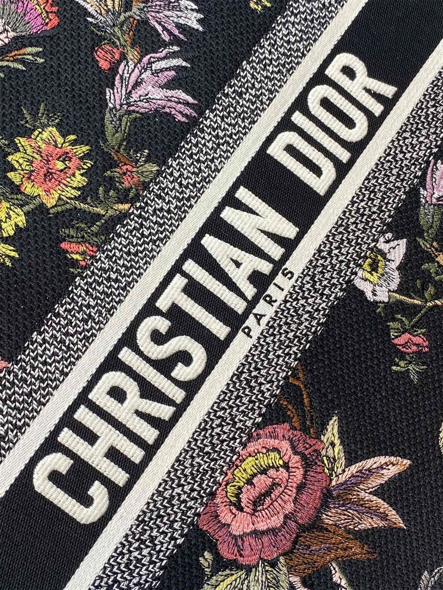 The Dior Book Tote is an original creation introduced by Maria Grazia Chiuri, Dior’s Creative Director, and has become a staple of the Dior aesthetic. Designed to hold all the daily essentials, it is fully embroidered with the powder pink Dior Jardin Botanique motif and presents a romantic floral pattern inspired by Mr. Dior’s beloved Granville gardens. Adorned with the ‘CHRISTIAN DIOR PARIS’ signature on the front, the large tote exemplifies the House’s signature savoir-faire and may be carried by hand or worn over the shoulder.