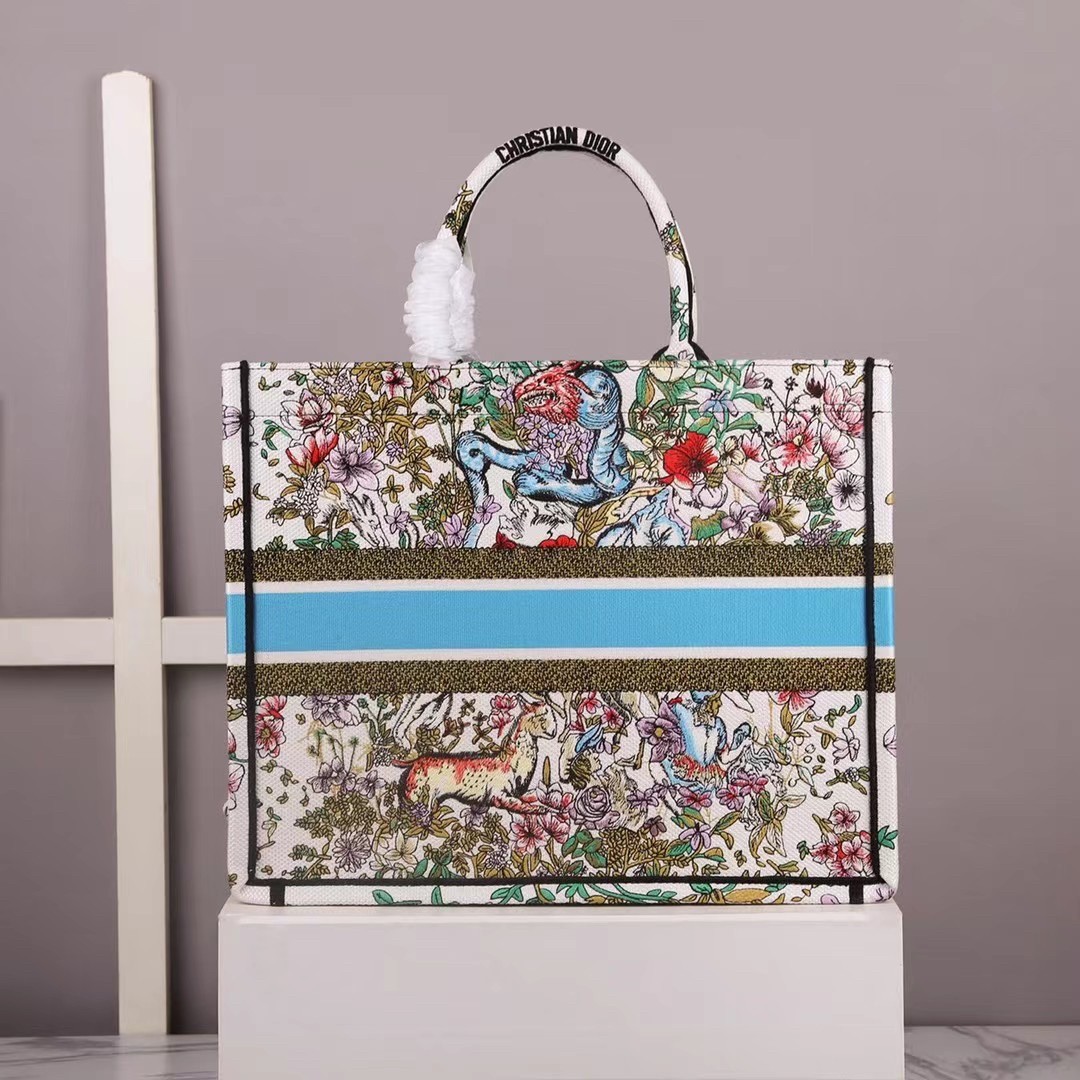 Introduced by Maria Grazia Chiuri, Creative Director of Christian Dior, the Dior Book Tote has become a staple of the Dior aesthetic. Designed to hold all daily essentials, the style is fully embroidered with a latte multicolor D-Constellation motif, embodying Mr. Dior’s passion for astrology. Adorned with the ‘CHRISTIAN DIOR PARIS’ signature on the front, the large tote exemplifies the House’s signature savoir-faire and may be carried by hand or worn over the shoulder.