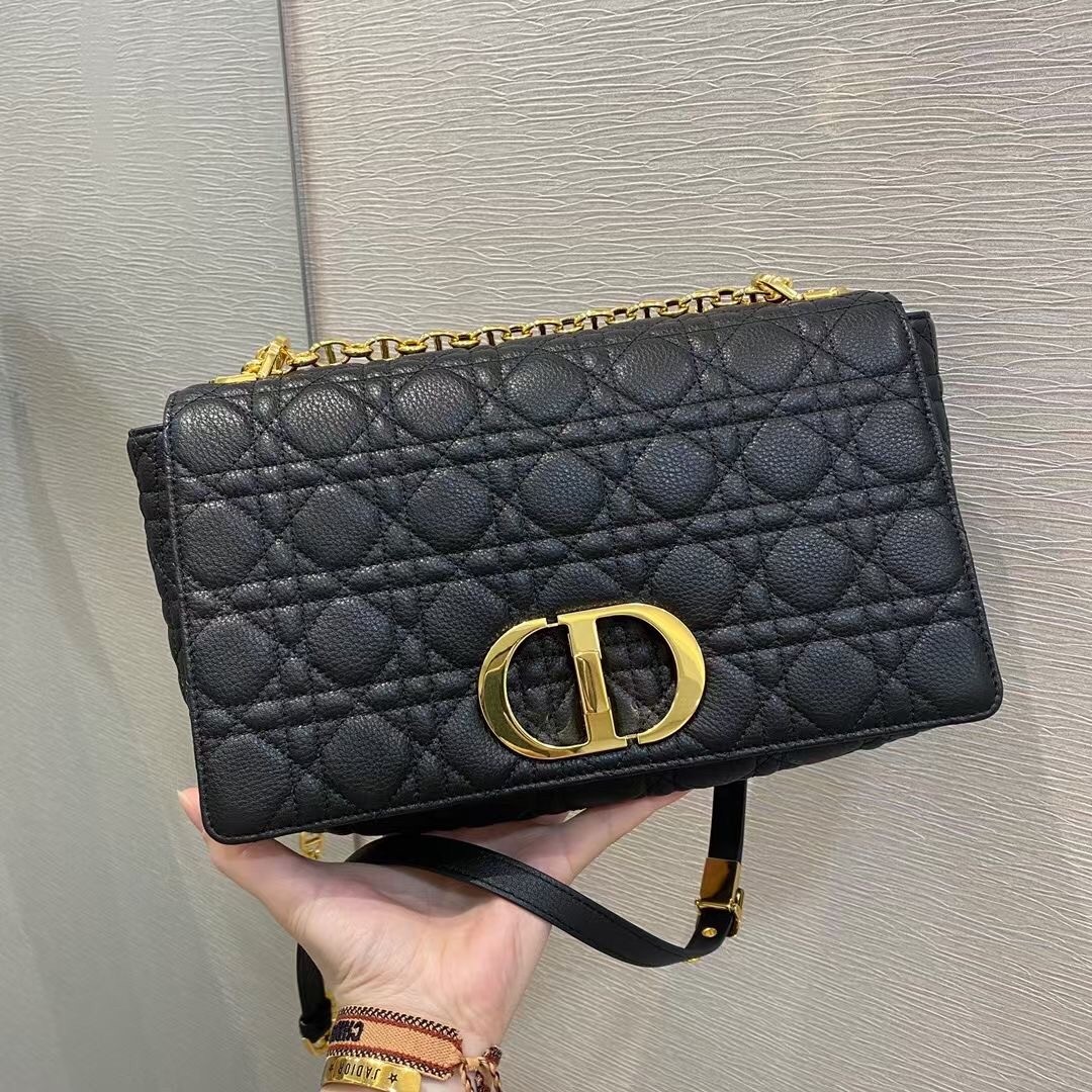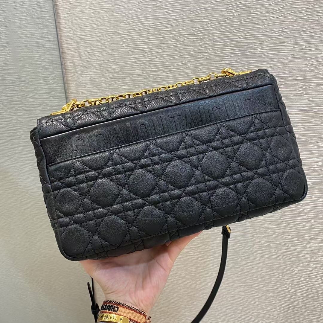 First introduced on Dior’s Cruise 2021 runway, the Caro Bag pays tribute to Christian Dior’s younger sister Catherine, known affectionately as ??Caro??. Inspired by traditional Dior house codes, combining house’s statement Cannage motif and impeccable craftsmanship. The removable signature ‘CD’ chain link shoulder strap can be replaced with a wide embroidered strap, allowing the large style to be worn during both the day and evening in a modern, elegant look.