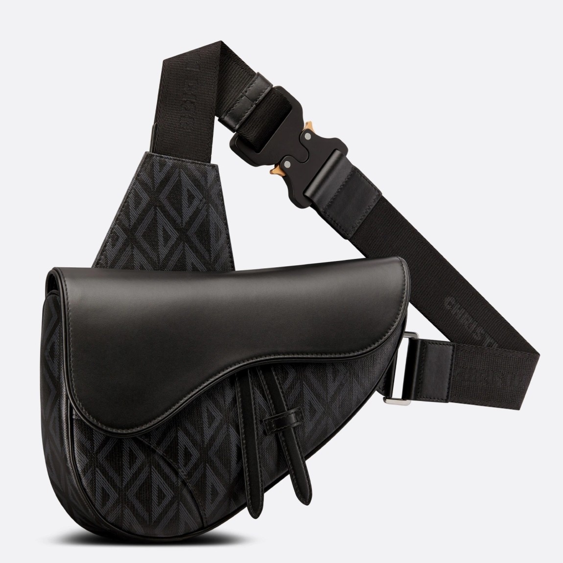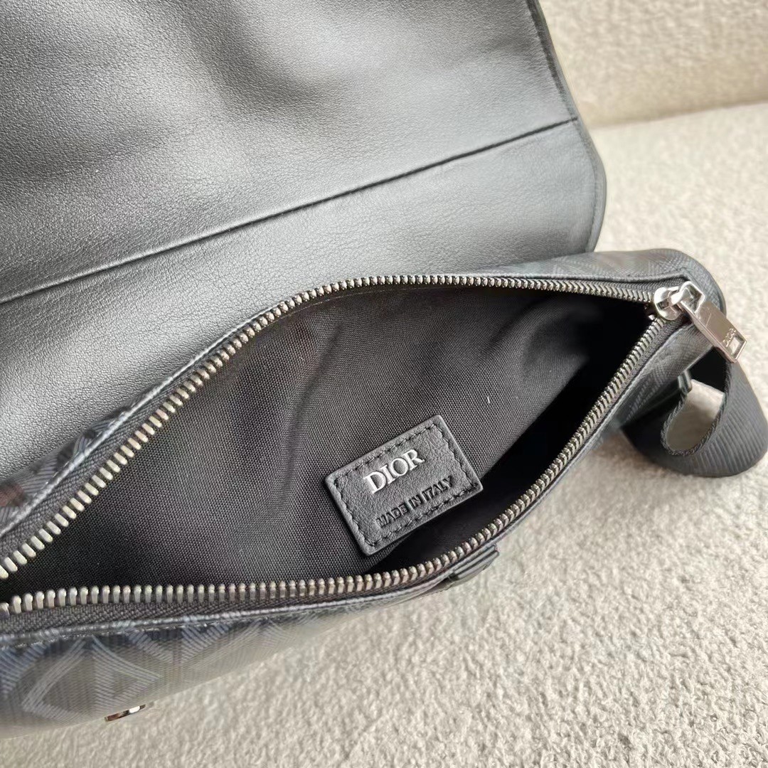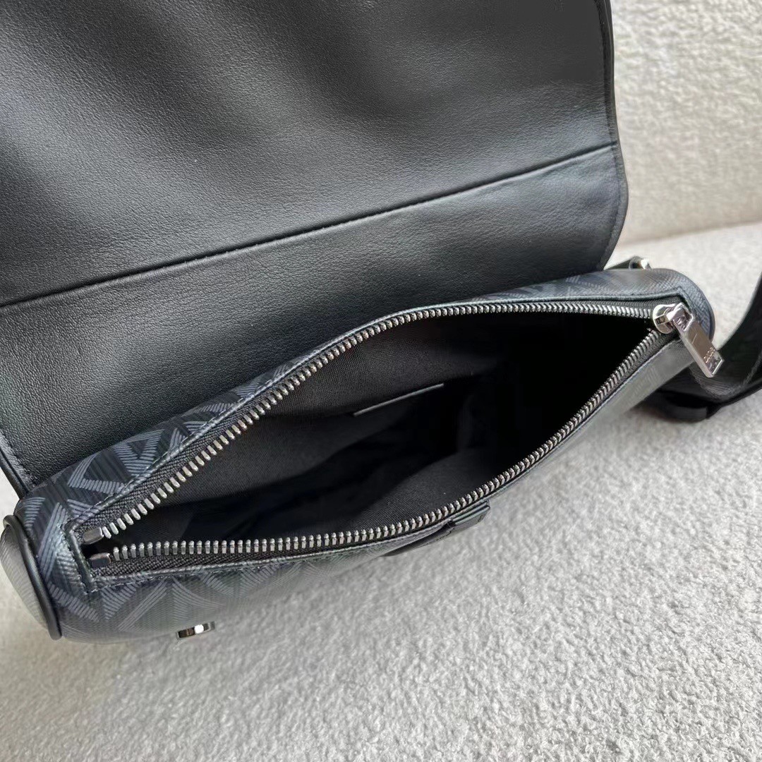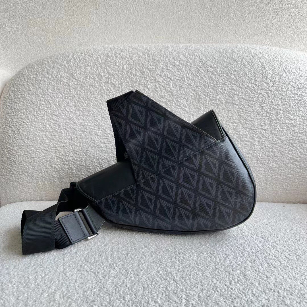 The Saddle bag presents a new take on Dior’s classic piece with a black canvas version featuring the CD Diamond motif inspired by the House’s archives. The style has a black smooth calfskin magnetic flap concealing a zip pocket that safely stores the essentials. The adjustable ‘CHRISTIAN DIOR’ jacquard strap allows the bag to be worn over the shoulder or crossbody.