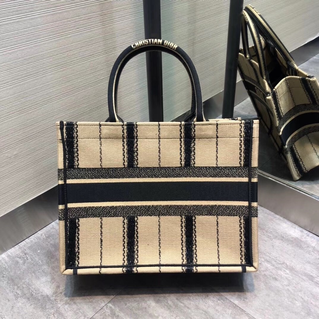 The Dior Book Tote, an original style introduced by Christian Dior’s creative director, Maria Grazia Chiuri, has become a staple of the Dior aesthetic. Ideally designed to carry all your daily essentials, the small shape is fully embroidered with lurex portraying a bayad??re print, with the debossed ‘Christian Dior’ signature on the front. This carryall is a perfect example of the Dior savoir-faire and it may be worn with other small accessories or the Mitzah scarf for a complete look.