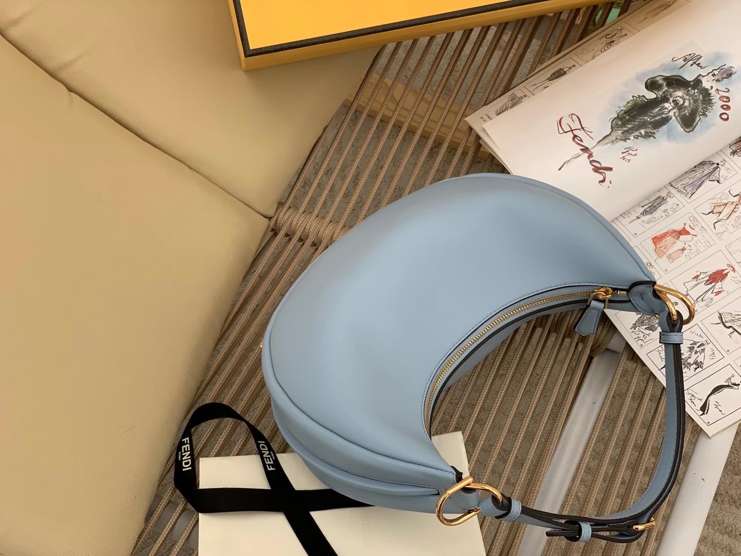 Revealed on brand’s Spring/Summer 2022 runway, the Fendigraphy Bag is Fendi’s take on the timeless hobo silhouette and the fashion crowd is already obsessed! Defined by a crescent shape with a spacious carry-all design, the Fendigraphy bag is a modern and bold icon ?C the new must-have for the powerful and confident Fendi woman. Once worn, the bag will stun with its maxi Fendi golden metal script, leaving the iconicity of the Maison’s logo on display for everyone to see. Wearability being so dear to Fendi, the bag fits perfectly under the arm thanks to its circular armhole. Its removable and adjustable strap allows you to transform it into a soft and supple satchel bag with a functional crossbody attitude if paired with a Strap You.