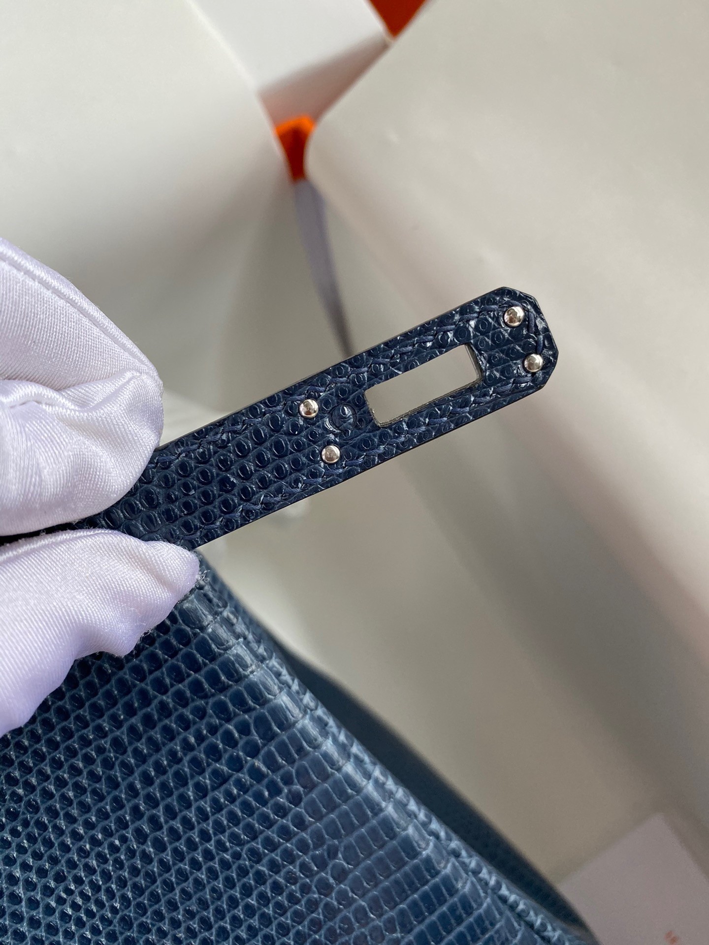 First adorned on the arm of the infamous Jane Birkin back in 1984, the Hermes Birkin Bag quickly soared to the top of the popularity charts, becoming one of the most sought after bags in the fashion industry. The Retourne style Birkin bag has a soft and relaxed look. Made from Lizard leather, this skin is extremely valuable and rare and is processed as little as possible to maintain its natural texture. The 25 cm size is a glamorous choice for day to evening, cocktails or the red carpet.