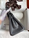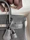 First adorned on the arm of the infamous Jane Birkin back in 1984, the Hermes Birkin Bag quickly soared to the top of the popularity charts, becoming one of the most sought after bags in the fashion industry. The Retourne style Birkin bag is crafted inside out, with the stitching inside the bag to create soft seams and rounded corners. Made from the Mississippiensis Alligator, also known as the American Alligator, the Birkin 25cm is a glamorous choice for day to evening, cocktails or the red carpet.