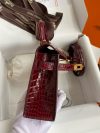 It wasn’t until Fall 2016 that Herm??s re-launched the modernized Mini Kelly II, which collectors and celebrities swooned over instantly. Delicate and very expensive, the skin of this bag is farmed from the Alligator Mississippiensis alligator, also known as the American Alligator, which is created by polishing the spots with agate for a lisse finish. Should be kept away from water. It an exquisite cocktail bag and an inspired choice for a red carpet event.