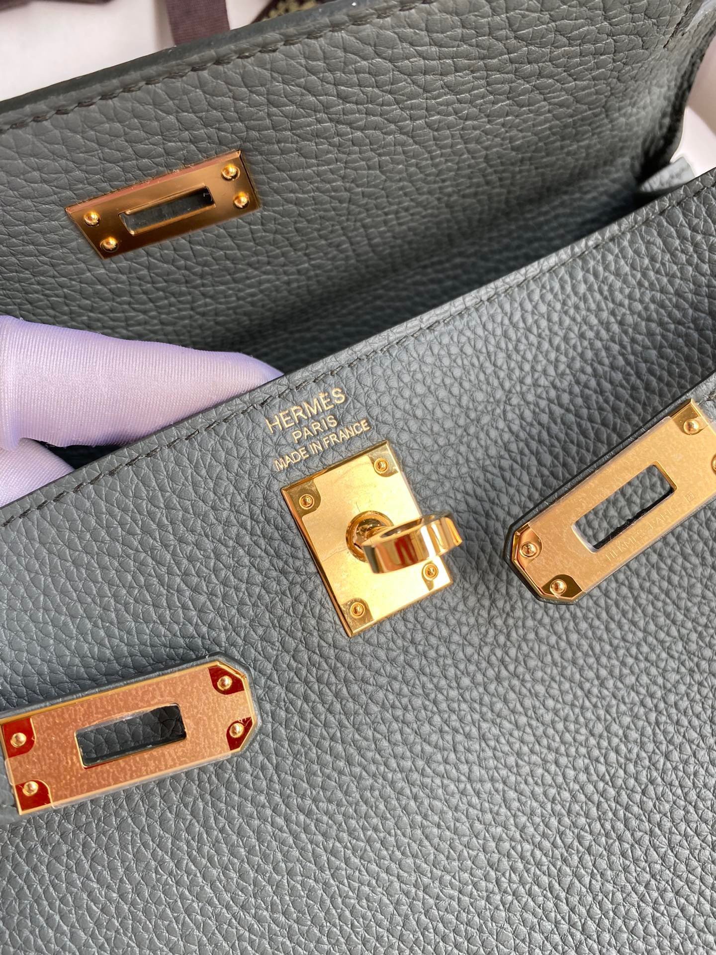 - Hermes Paris em relevo nas ferragens