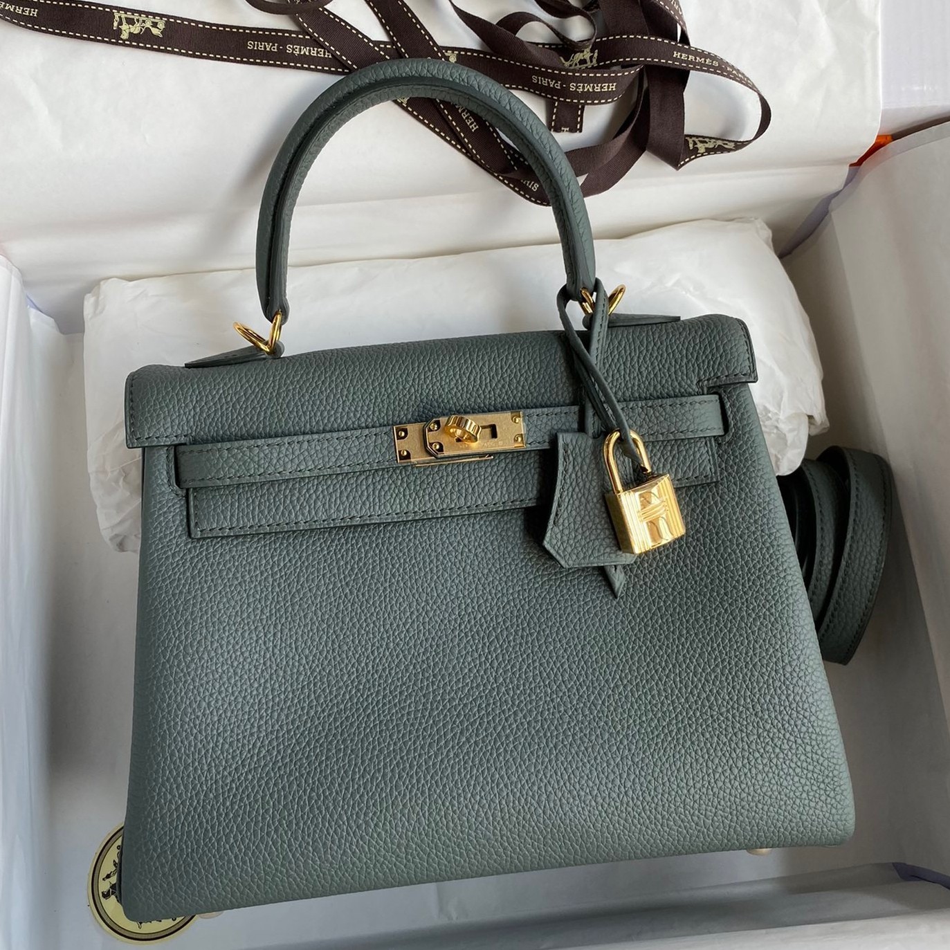 Inclui um saco para o pó e um cartão de certificado Hermes.