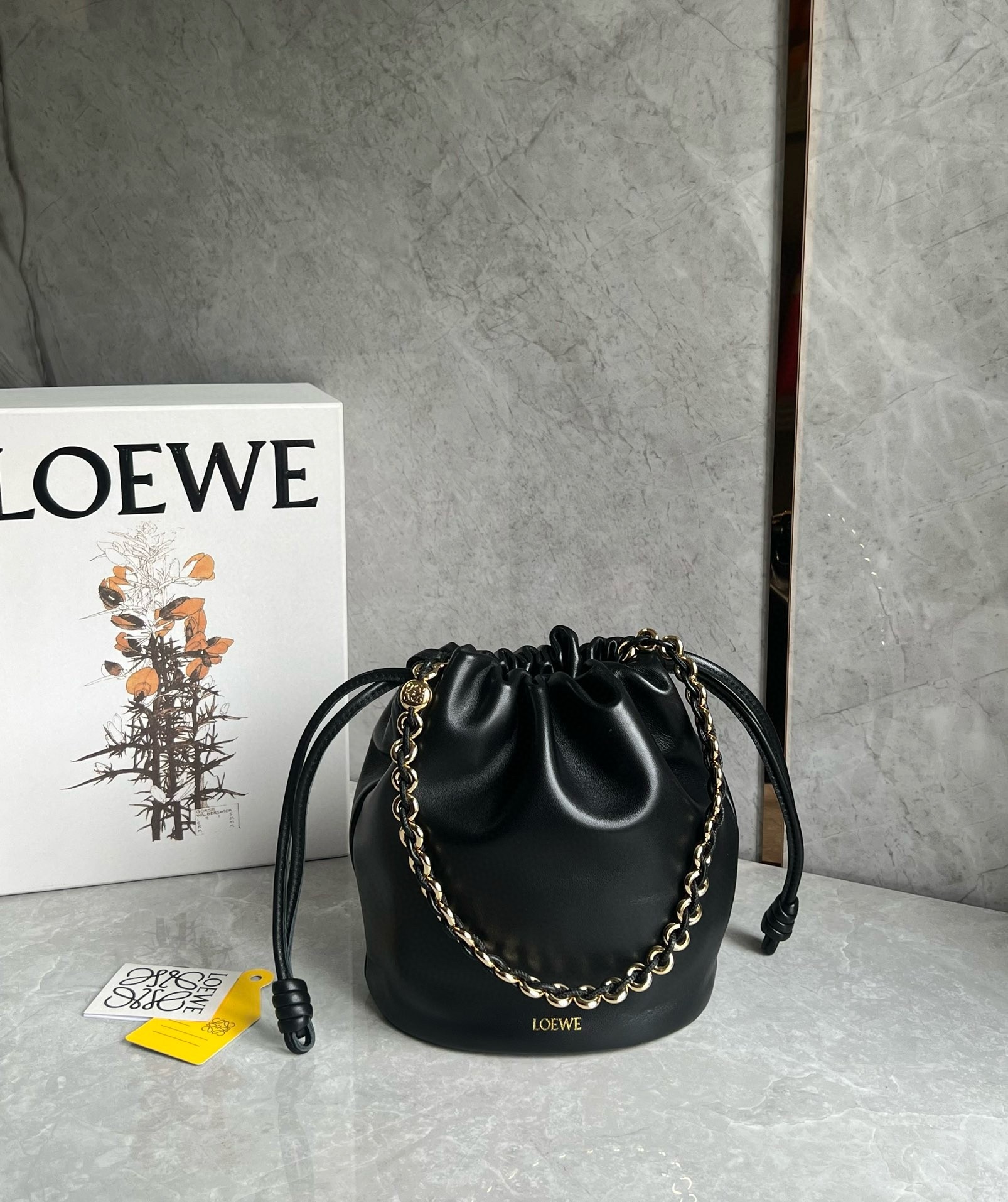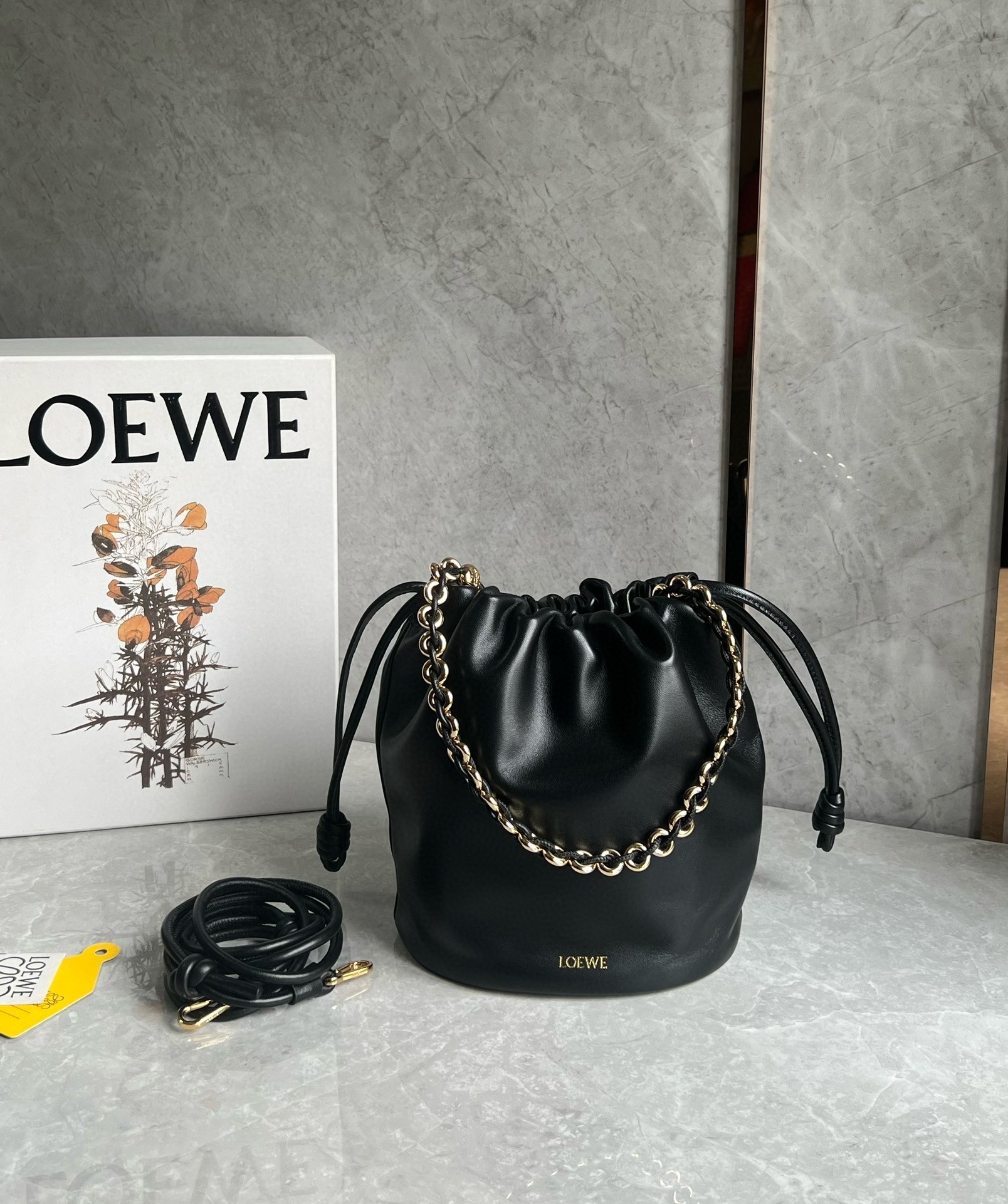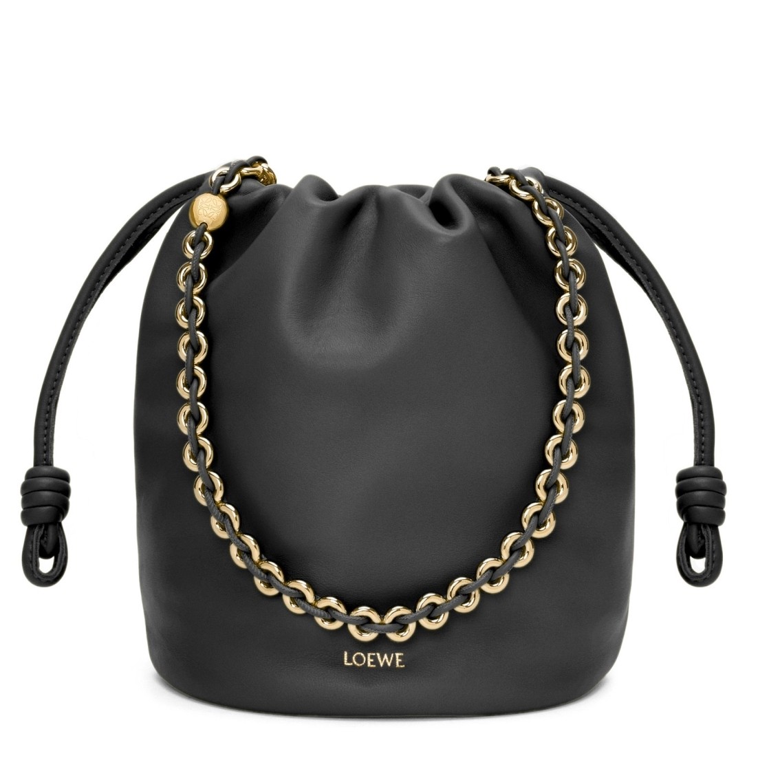 The Flamenco Purse is defined by a ruched design complemented by key details such as the signature knots at the sides. The bucket variation boasts a new everyday size while retaining the line’s aesthetics. Crafted in nappa lambskin, this versatile bag can be hand carried, worn over the shoulder with the donut chain, or transformed into a crossbody using the leather strap.